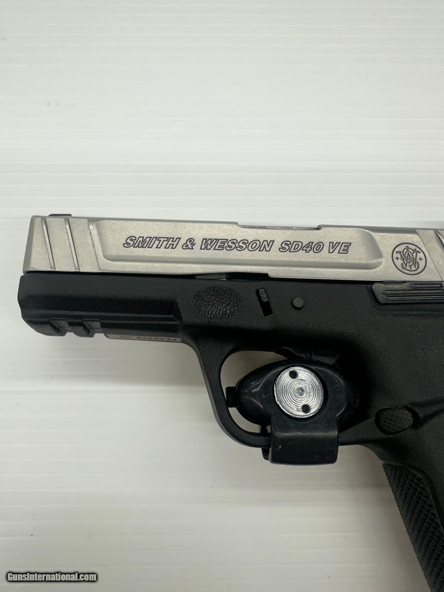 Description: Guns Listing ID: 1311094 Smith & Wesson SD40 VE 40S&W pistol with 1 magazine SOLD Manufacturer: SMITH & WESSON Model: SD40 VE Caliber Info: .40 S&W Condition: Used - Non-Certified Barrels: 4 BARREL Finish: SILVER AND BLACK |