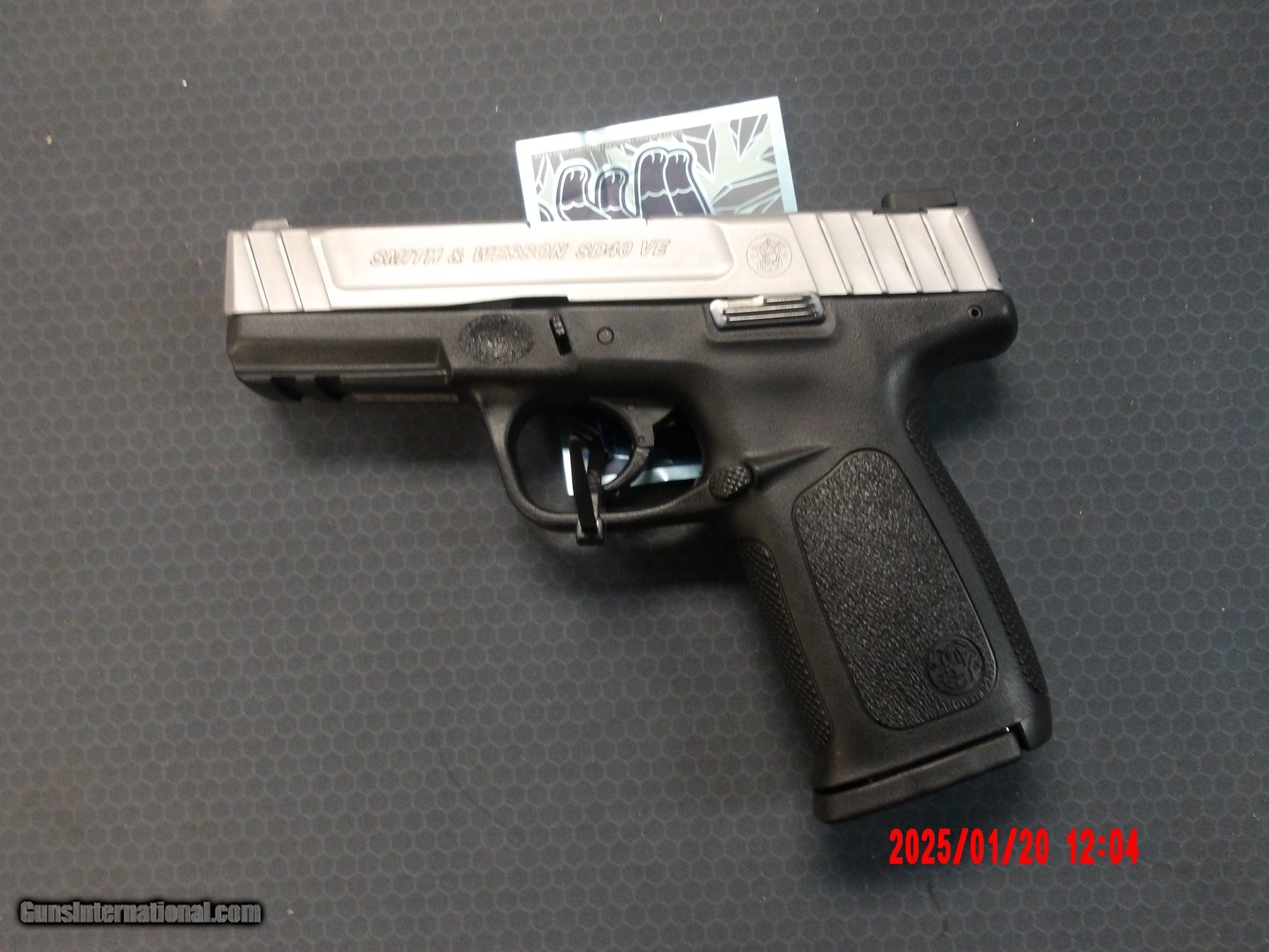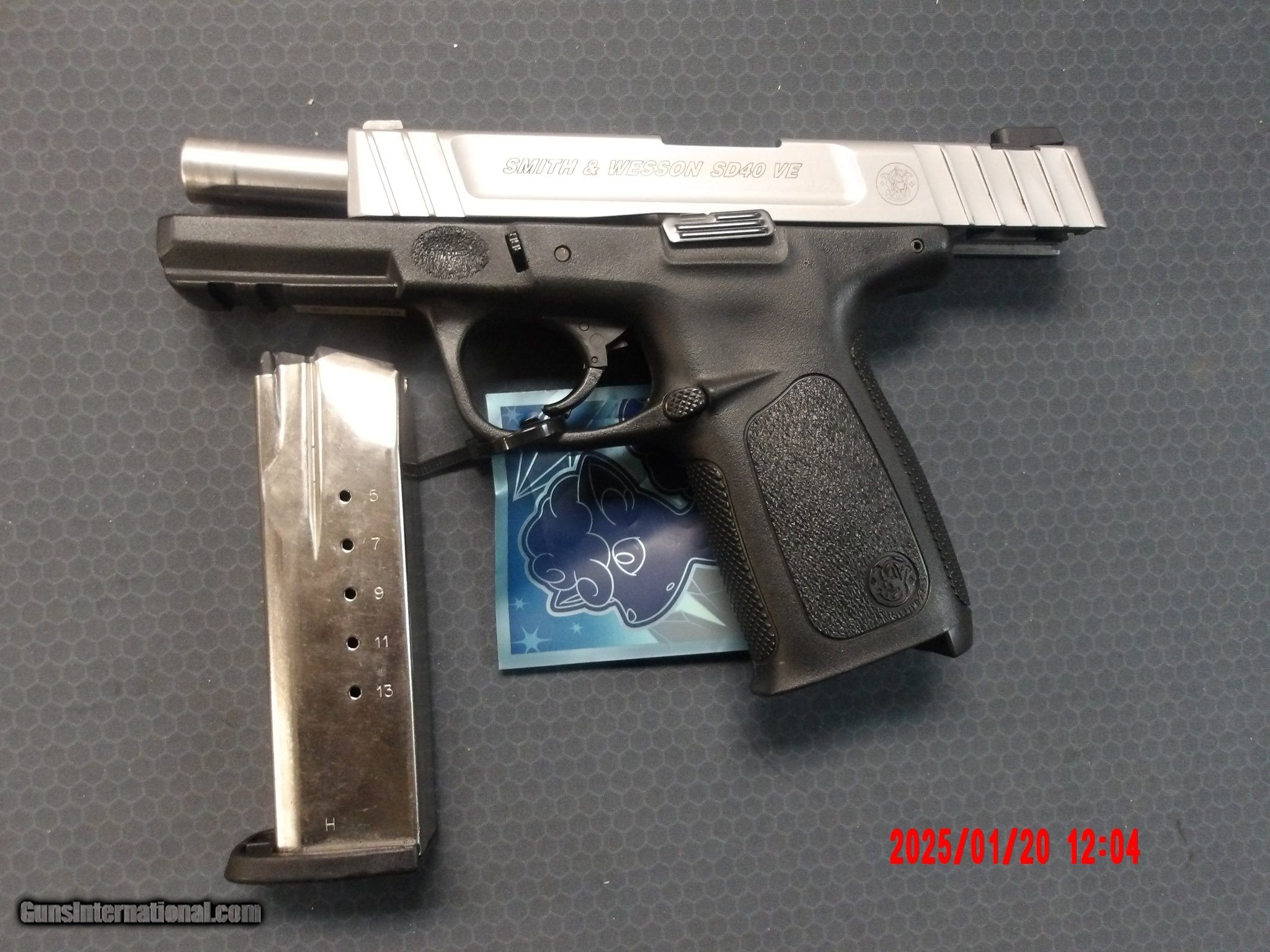 Description: Guns Listing ID: 483007 PISTOL: SMITH & WESSON MODEL SD40VE, SERIAL NUMBER FWX4763, SEMI - AUTOMATIC, 40 SMITH & WESSON, MATTE STAINLESS, NOT INCLUDED, NA SOLD Manufacturer: SMITH & WESSON Model: SD40 VE Condition: Used - Non-Certified Barrels: 4 Gauge Info: .40 S&W Finish: black & silver |