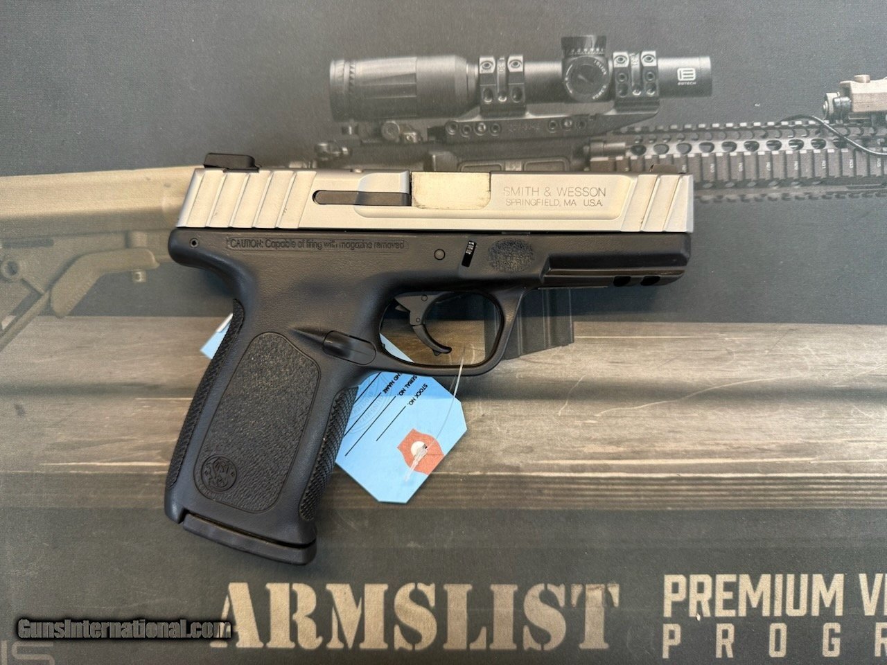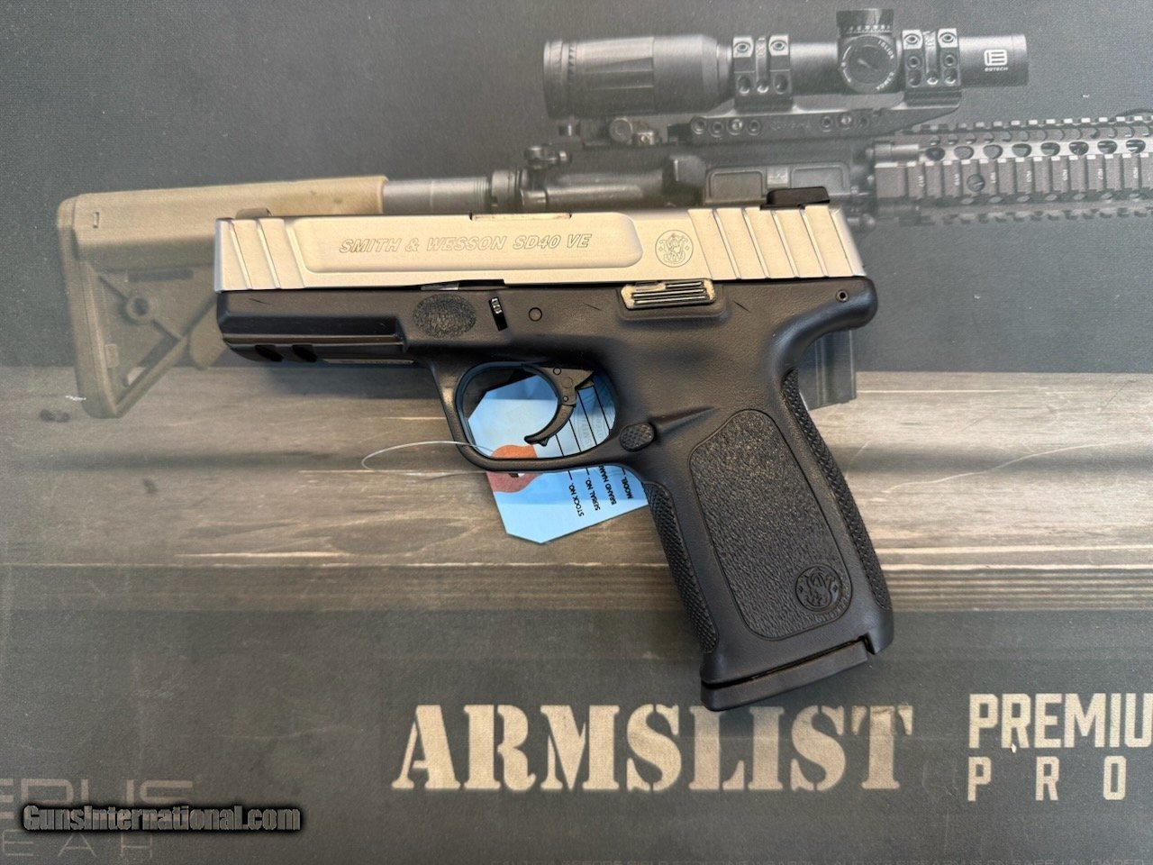 Description: Guns Listing ID: 574470 This Smith & Wesson SD40 VE in a distinctive 2 tone finish, features dovetailed white-dot sights. The standard picatinny style rail makes it easier for quick attachment and detachment of a tac-light. The aggressive front and back strap texturing on the ergonomic grip allows for a tight grip when firing, while the textured finger locator encourages correct hand placement. The SD40 VE features a tactile loaded chamber indicator, and serrations at the front and back of the slide allowing for an easier racking. This comes with a single 14+1 round magazine. Manufacturer: SMITH & WESSON Model: SD40 VE Caliber Info: .40 S&W Condition: Used - Non-Certified Barrels: 4" BARREL Action: SEMI AUTOMATIC Finish: black & stainless Price: $329.99 Contact Seller |