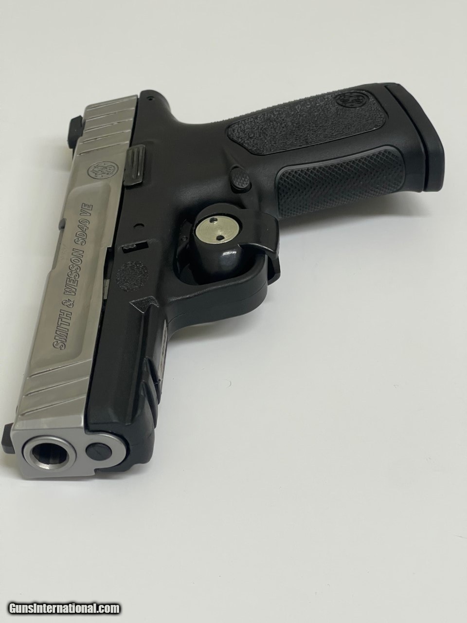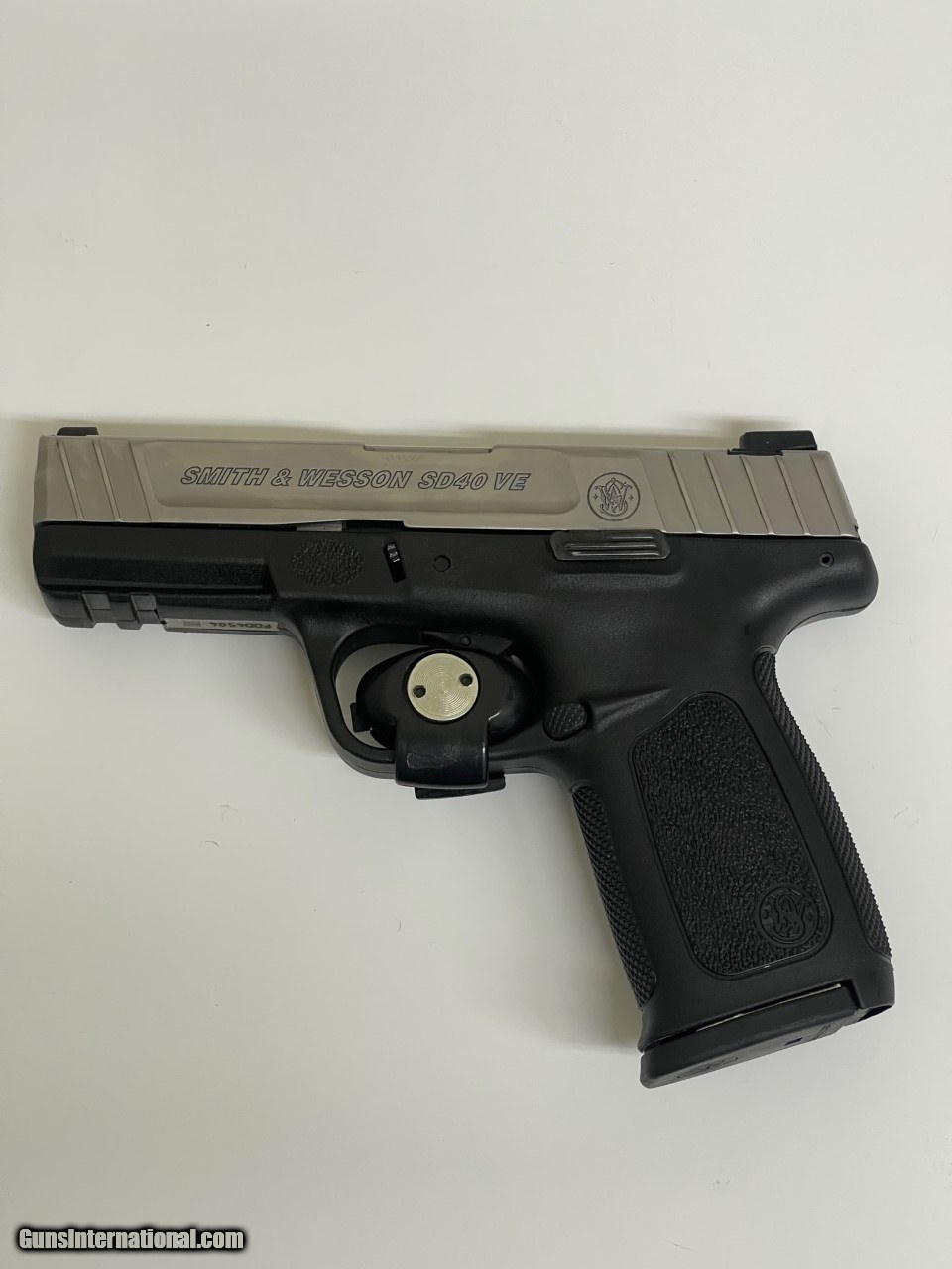 Description: Guns Listing ID: 477440 WITH ONE ORIGINAL MAGAZINE IN GREAT SHAPE LIKE NEW SOLD Manufacturer: SMITH & WESSON Model: SD40 VE Caliber Info: 40 S&W Condition: Used - Non-Certified Barrels: 4 BARREL Finish: STAINLESS AND BLACK |