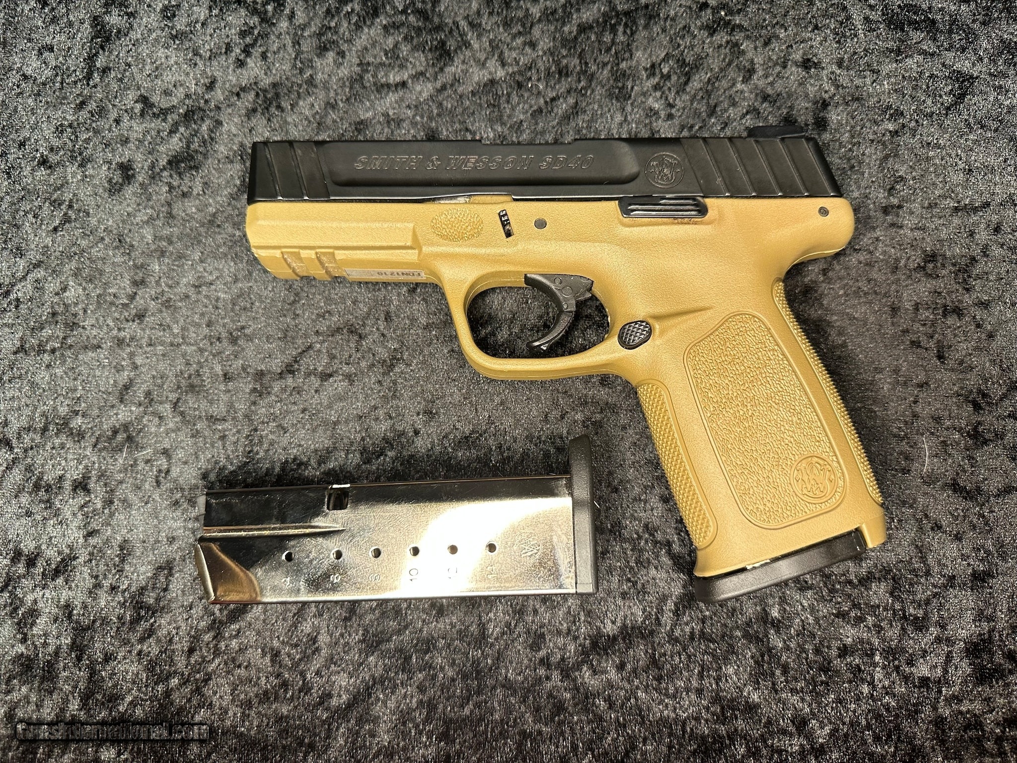 Description: Guns Listing ID: 705061 Smith & Wesson SD40 in a Flat Dark Earth finish. Includes 2-14 RND magazines and original box with accessories. In great condition with no scuffs or scratches SOLD Manufacturer: SMITH & WESSON Model: SD40 Caliber Info: .40 S&W Condition: Used - Non-Certified Barrels: 4 BARREL |
