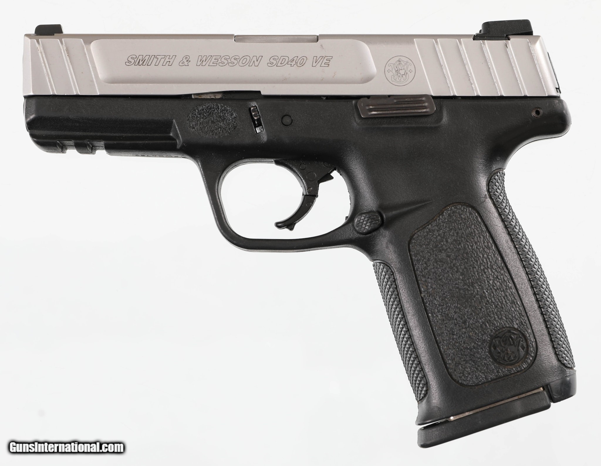Description: Guns Listing ID: 775583 MAKE - SMITH & WESSON MODEL - SD40 VE FINISH - STAINLESS STEEL SLIDE / BLACK FRAME BARREL - 4\" CALIBER - 40 S&W CAPACITY - 14 GRIPS - POLYMER CONDITION - EXCELLENT SOLD Manufacturer: SMITH & WESSON Model: SD40VE 40S&W Caliber Info: 40 S&W Condition: Used - Non-Certified Barrels: 4 BARREL Finish: BLACK AND STAINLESS |
