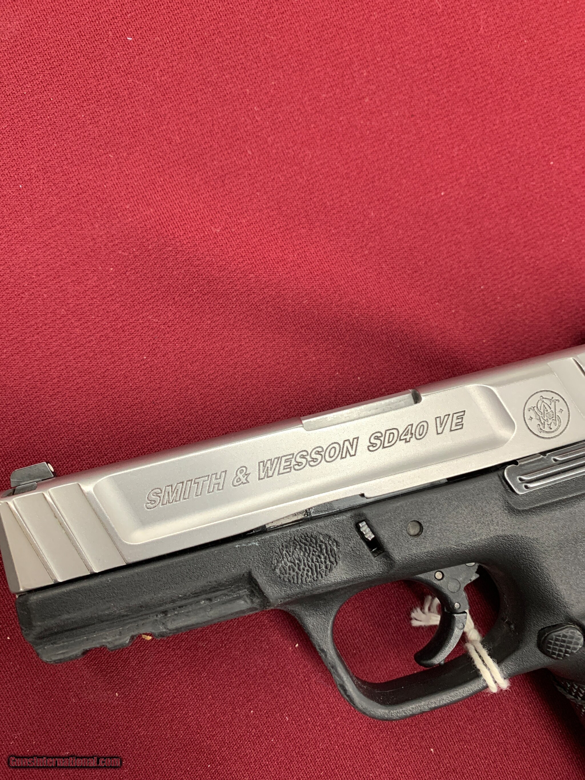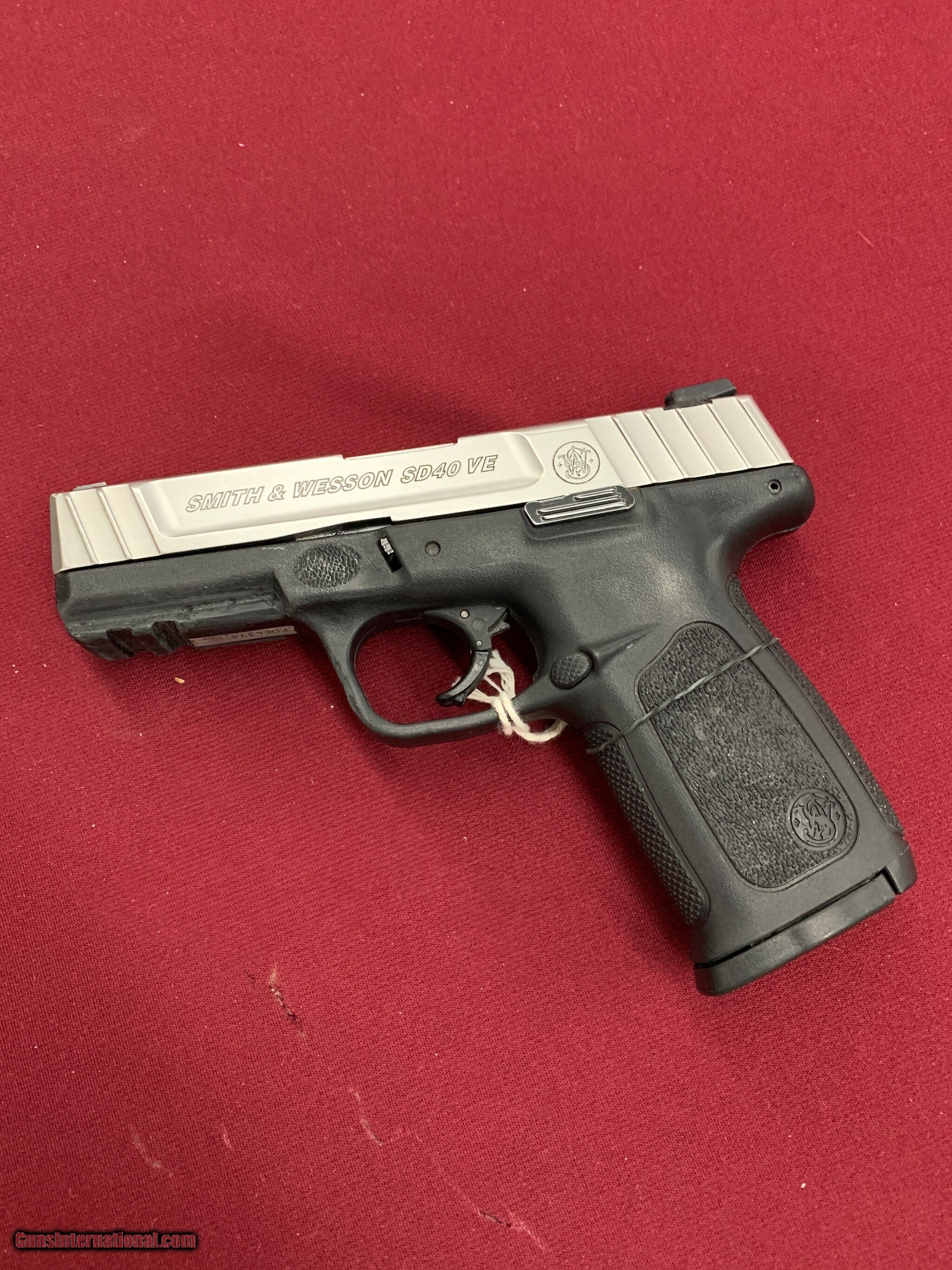 Description: Guns Listing ID: 511728 Smith and Wesson, SD40VE, semi-auto pistol, 40sw, One 14 round mag SOLD Manufacturer: SMITH & WESSON Model: SD40VE Caliber Info: 40 S&W Condition: Used - Non-Certified Barrels: 4 BARREL Finish: TWO TONE BLACK AND STAINLESS |