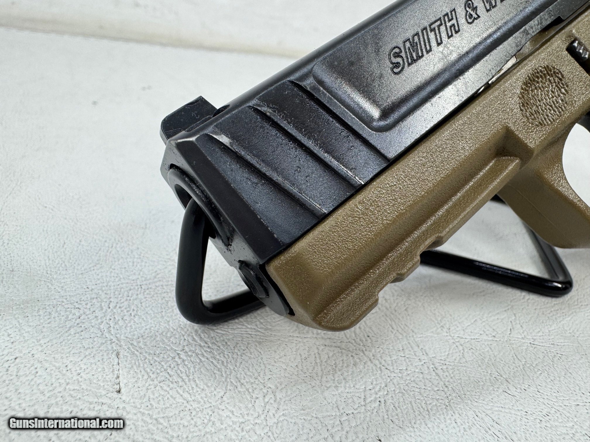 Description: Guns Listing ID: 613122 THIS IS A SMITH & WESSON SD9 HAS BLACK ARMORNITE FINISH SLIDE WITH VERY LITTLE HOLSTER WEAR ON FRONT OF SLIDE. FDE (FLAT DARK EARTH) POLYMER FRAME WITH CHECKERED FRONT AND REAR GRIP WITH ROUGH TEXTURE ON SIDES OF GRIP. HAS PICATINNY RAIL SYSTEM FOR ATTACHMENTS. 3-DOT WHITE FRONT AND REAR SIGHT. REAR SIGHT HAS SOME SIGNS OF USE. HAS RIGHT HANDED (RH) MAGAZINE RELEASE AND SLIDE RELEASE. COMES WITH 2 MAGAZINES. OVERALL CONDITION IS VERY GOOD. Includes: Magazine(s): 2 Capacity: 16 Rounds Features: Manufacture: Smith & Wesson Model: SD9 Caliber: 9mm Luger Barrel Length: 4.00\" Full Length: 7.12\" Length Of Pull: 2.74\" Slide Finish: Armornite Black Finish/ Stainless Barrel Finish: Black Stainless Frame: Polymer FDE (FLAT DARK EARTH) SKU# 315992 RR Manufacturer: SMITH & WESSON Model: SD9 Caliber Info: 9MM LUGER (9x19 PARA) Condition: Used - Non-Certified Barrels: 4" BARREL Action: SEMI AUTOMATIC Finish: black/fde Price: $274.99 Contact Seller |