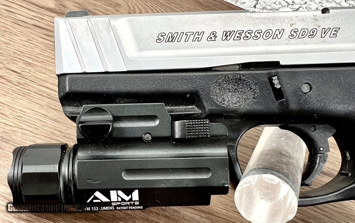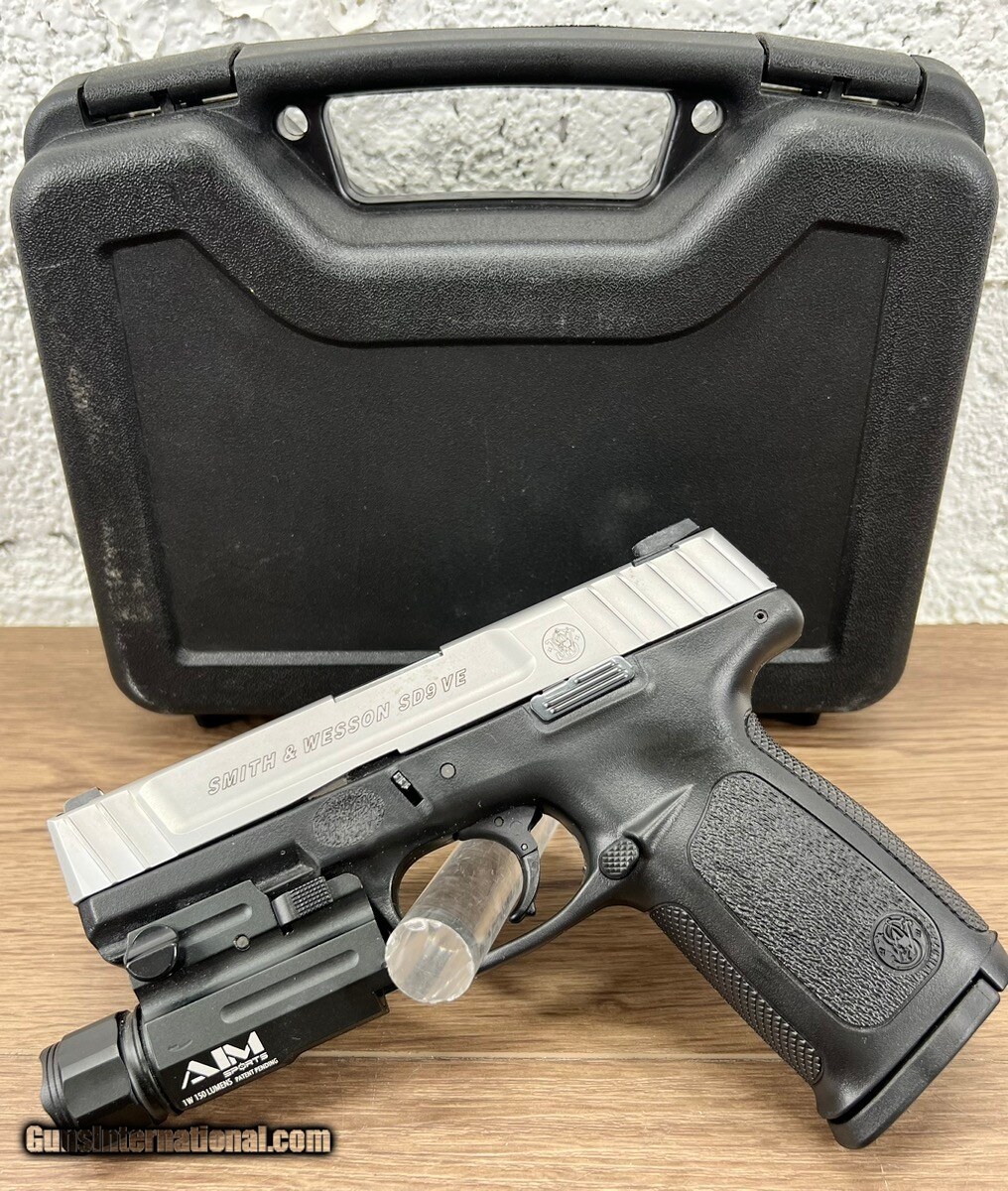 Description: Guns Listing ID: 918459 PISTOL: SMITH & WESSON MODEL SD9VE (223900), SEMI - AUTOMATIC, 9MM, 2- TONE, INCLUDES PROTECTIVE CASE, 4\" BARREL, 3 MAGS, FLASH LIGHT. IN GOOD CONDITION WITH MINOR WEAR FROM USE. DEALER SPECS: SMITH AND WESSON SD9VE FEATURES Smith & Wesson’s new SD9 VE, with its distinctive two-tone finish, is a semi-automatic pistol, chambered in 9mm. This new offering features Smith & Wesson’s SDT - a Self Defense Trigger for optimal, consistent pull from the first round to the last. The picatinny-style rail gives you the option of adding accessories such as a light or laser. Another new feature is the aggressive front and back strap texturing, which provides a more secure grip, while still maintaining comfortability. SMITH AND WESSON SD9VE SPECIATIONS Manufacturer: Smith & Wesson Model: SD9VE Caliber: 9mm Capacity: 16 Rounds Barrel Length: 4\" / 10.2 cm Overall Length: 7.2\" Front Sight: White Dot Rear Sight: Fixed 2-Dot Action: Striker Fire Grip: Textured Polymer Weight: 22.4 oz / 635.0g Barrel Material: Stainless Steel Slide Material: Stainless Steel Frame Material: Polymer Slide Finish: Satin Stainless Frame Finish: Black Safety: No Manual Safety SOLD Manufacturer: SMITH & WESSON Model: SD9 VE Caliber Info: 9MM LUGER (9X19 PARA) Condition: Used - Non-Certified Barrels: 4 BARREL Finish: TWO-TONE |