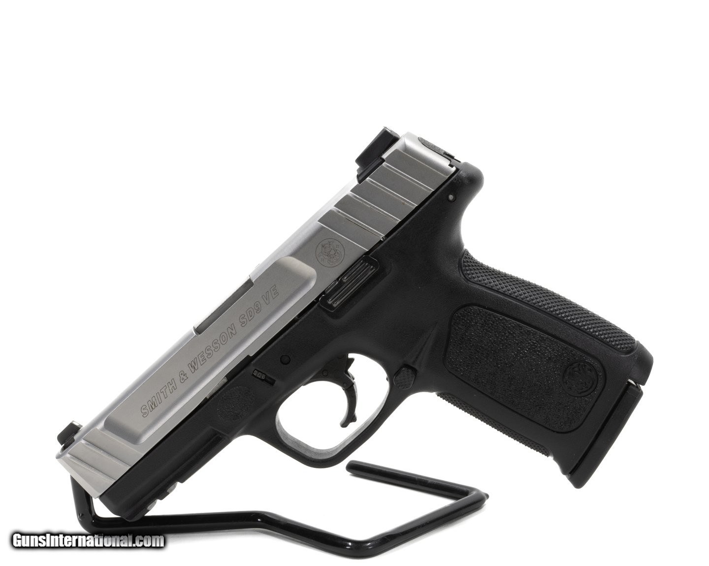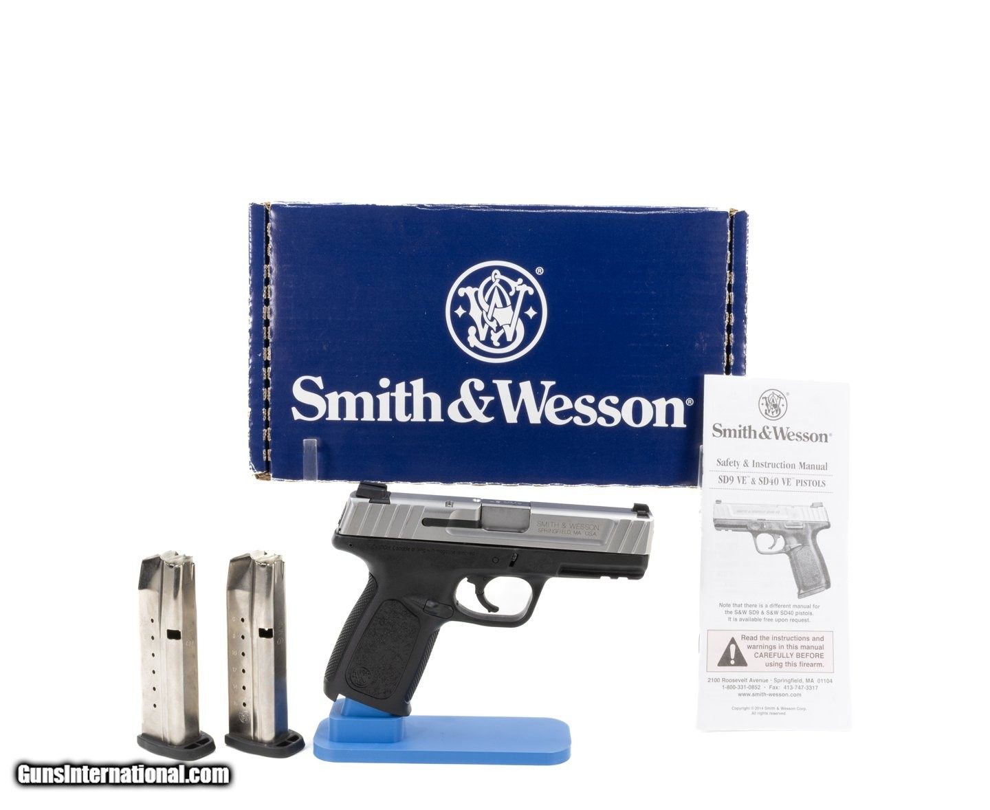 Description: Guns Listing ID: 566994 Pre-Owned S&W SD9 VE Two-Tone Pistol w/ Box & Two Mags 9mm 16+1 Manufacturer: Smith & Wesson Model: SD9 VE Condition: Very Good Caliber: 9x19mm Action: Semi-Auto Barrel Length: 4\" Capacity: 16+1 Finish: Two-tone, stainless steel slide & black frame Inventory: Firearm, (2) 16-rd magazines, original box, manual. UPC: 022188149326 SKU: 223900 • We do not test fire used guns. All guns are function checked once we receive them. Unless stated otherwise, this firearm is functional. SOLD Manufacturer: SMITH & WESSON Model: SD9 VE Caliber Info: 9MM LUGER (9x19 PARA) Condition: Used - Non-Certified Barrels: 4" BARREL Action: SEMI AUTOMATIC Finish: two-tone |