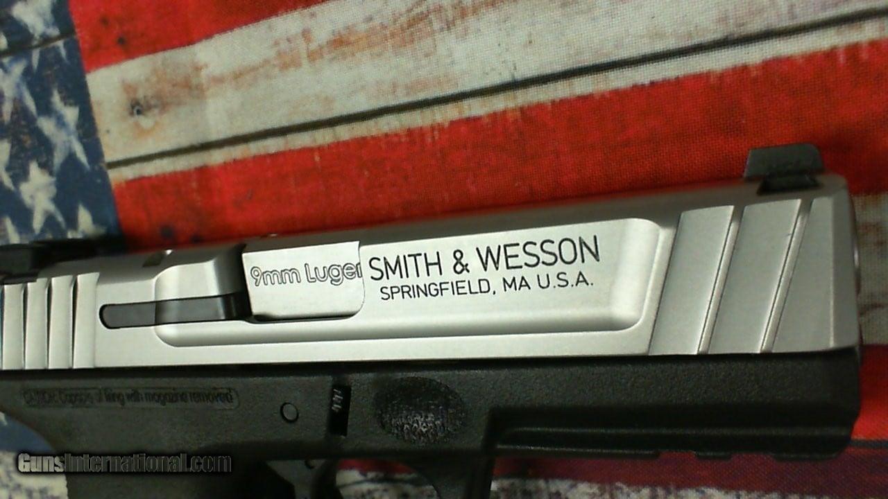 Description: Guns Listing ID: 570495 Appears Unfired! The SD VE features an SDT (Self Defense Trigger) for optimal, consistent pull first round to last. The polymer grip frame has a slim, ergonomic, textured grip; textured finger locator; aggressive front and backstrap texturing; and Picatinny-style front rail. The stainless steel slide features front and rear serrations and is fitted with 3-dot white sights. This two tone model has a black frame with a satin finish stainless steel slide and includes a 16-round magazine. MANUFACTURER: Smith and Wesson FAMILY: Self Defense Series MODEL: SD9VE TYPE: Semi-Auto Pistol ACTION: Striker Fired CALIBER/GAUGE: 9mm FINISH: Stainless FRAME: Polymer Frame STOCK/GRIPS: Black Polymer BARREL: 4\" OVERALL LENGTH: 7.2\" CAPACITY: 16+1 # OF MAGAZINES: 2 MAG DESCRIPTION: 16+1 SIGHTS: White Dot Fixed WEIGHT: 22.7oz SHIPPING WEIGHT: 2.3 lbs. ADDL INFO: SDT Trigger ADDL INFO: Picatinny-Style Rail ADDL INFO: Front & Rear Slide Serrations MFG MODEL NO: 223900 UPC: 022188149326 SOLD Manufacturer: SMITH & WESSON Model: SD9 VE Caliber Info: 9MM LUGER (9X19 PARA) Condition: Used - Non-Certified Barrels: 4" barrel |