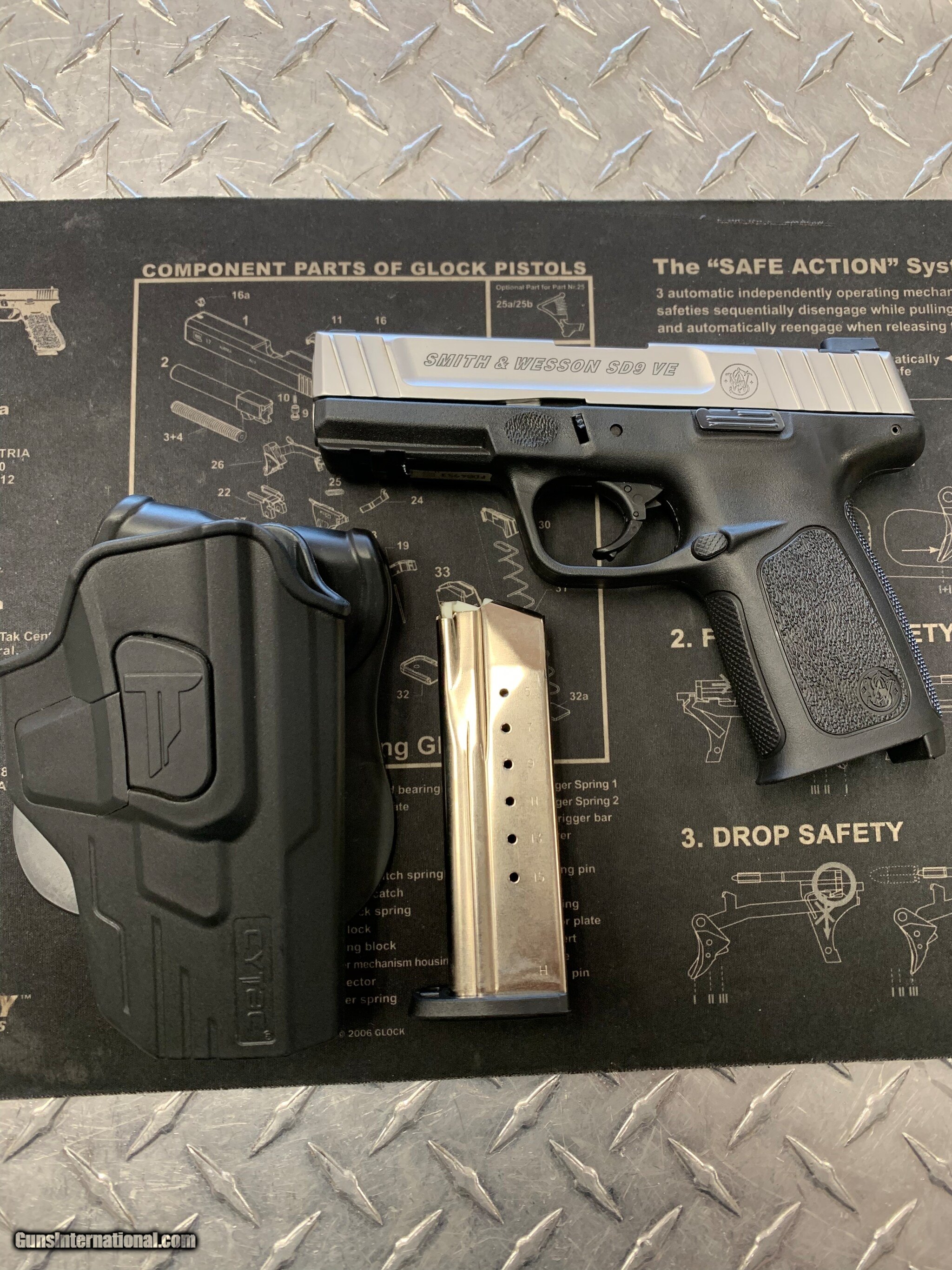 Description: Guns Listing ID: 599196 Great Condition!! 1 Mag Only!! Holster Included!!! SOLD Manufacturer: SMITH & WESSON Model: SD9 VE Caliber Info: 9MM LUGER (9X19 PARA) Condition: Used - Non-Certified Barrels: 4 BARREL Finish: STAINLESS AND BLACK |