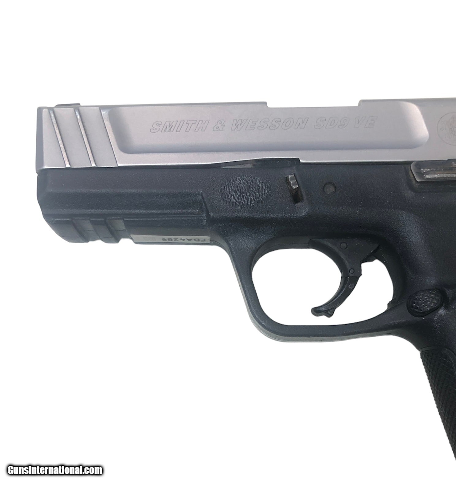 Description: Guns Listing ID: 666976 Manufacturer: S&W Importer: S & W Model: SD9 VE Type: Handgun Action Type: Semi-Automatic Caliber / Gauge: 9 MM Finish: Black Barrel Type: Single Grip Type: Polymer Barrel Length: 4 Magazine Capacity: 16 Magazine Quantity: 1 Case included: no Condition: Used SOLD Manufacturer: SMITH & WESSON Model: SD9 VE Caliber Info: 9MM LUGER (9X19 PARA) Condition: Used - Non-Certified Barrels: 4 BARREL Finish: BLACK |