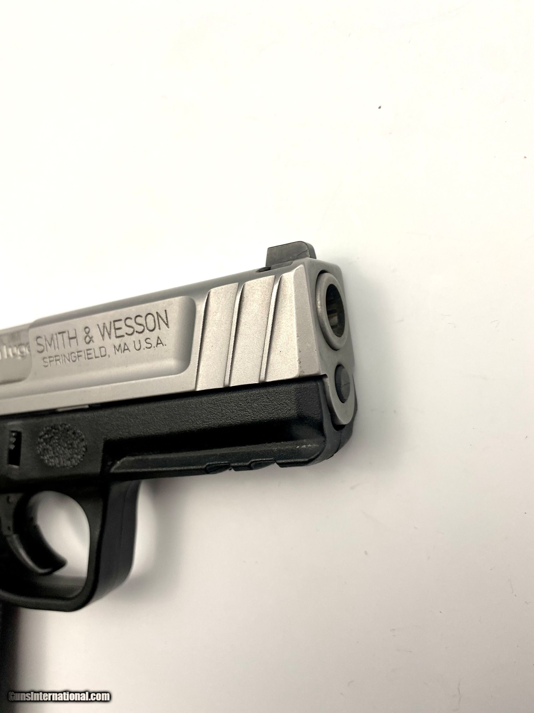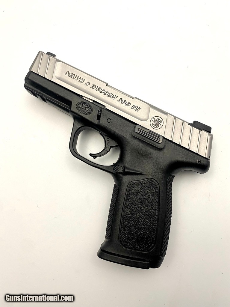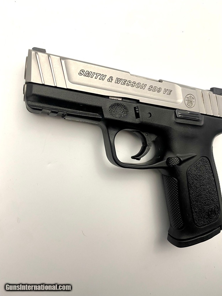 Description: Guns Listing ID: 685446 Pre-Owned Smith & Wesson SD9 VE in very good condition. It comes with a hard case and one 15rd magazine. SOLD Manufacturer: SMITH & WESSON Model: SD9 VE Caliber Info: 9MM LUGER (9X19 PARA) Condition: Used - Non-Certified Barrels: 4 BARREL Finish: BLACK AND SILVER |