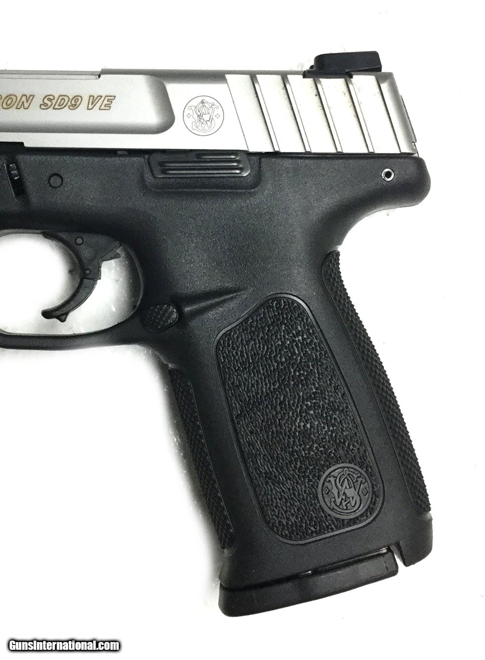 Description: Guns Listing ID: 826860 Manufacturer: S&W Importer: S & W Model: SD9VE - 223900 Type: Handgun Action Type: Semi-Automatic Caliber / Gauge: 9 MM Finish: Stainless Steel Barrel Type: Single Grip Type: Polymer Barrel Length: 4 Magazine Capacity: 17 Magazine Quantity: 1 Case included: no Condition: Used SOLD Manufacturer: SMITH & WESSON Model: SD9 VE Caliber Info: 9MM LUGER (9X19 PARA) Condition: Used - Non-Certified Barrels: 4 BARREL |