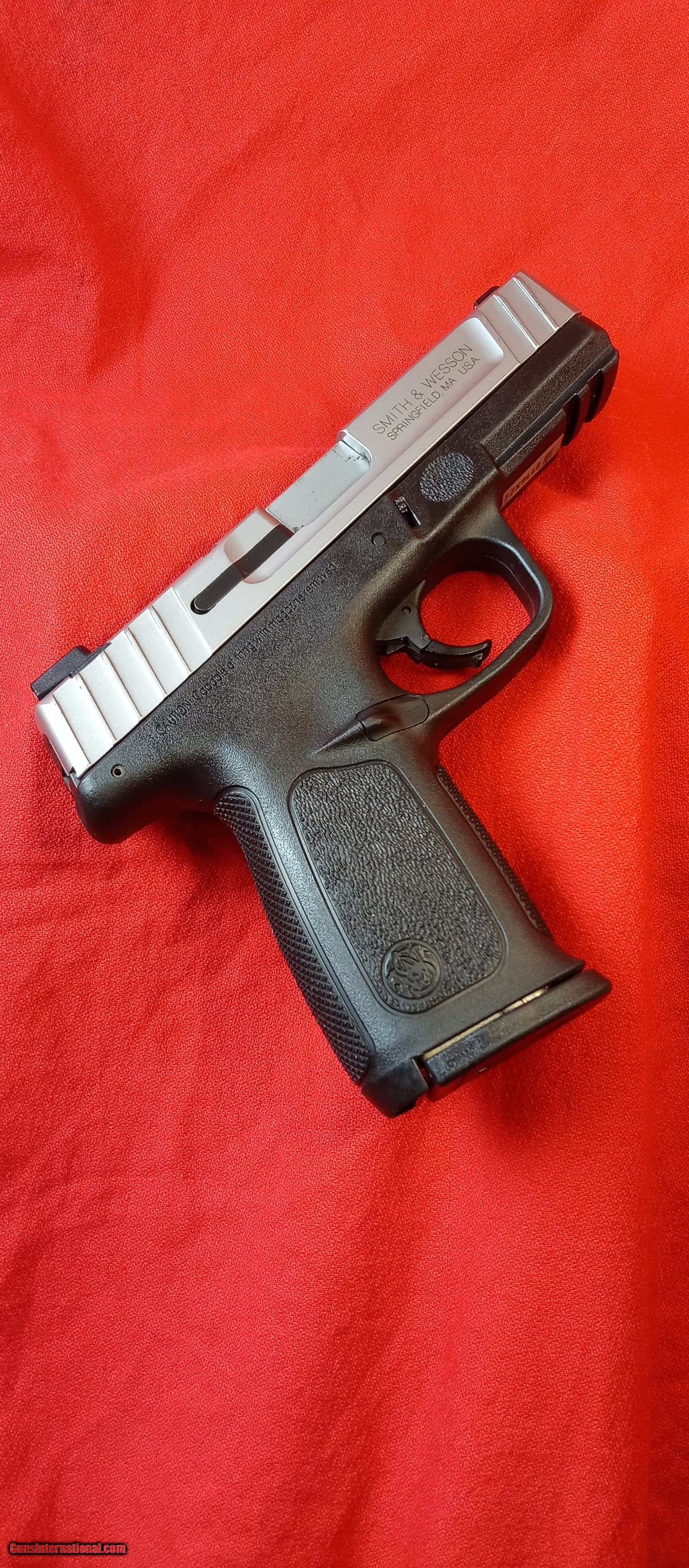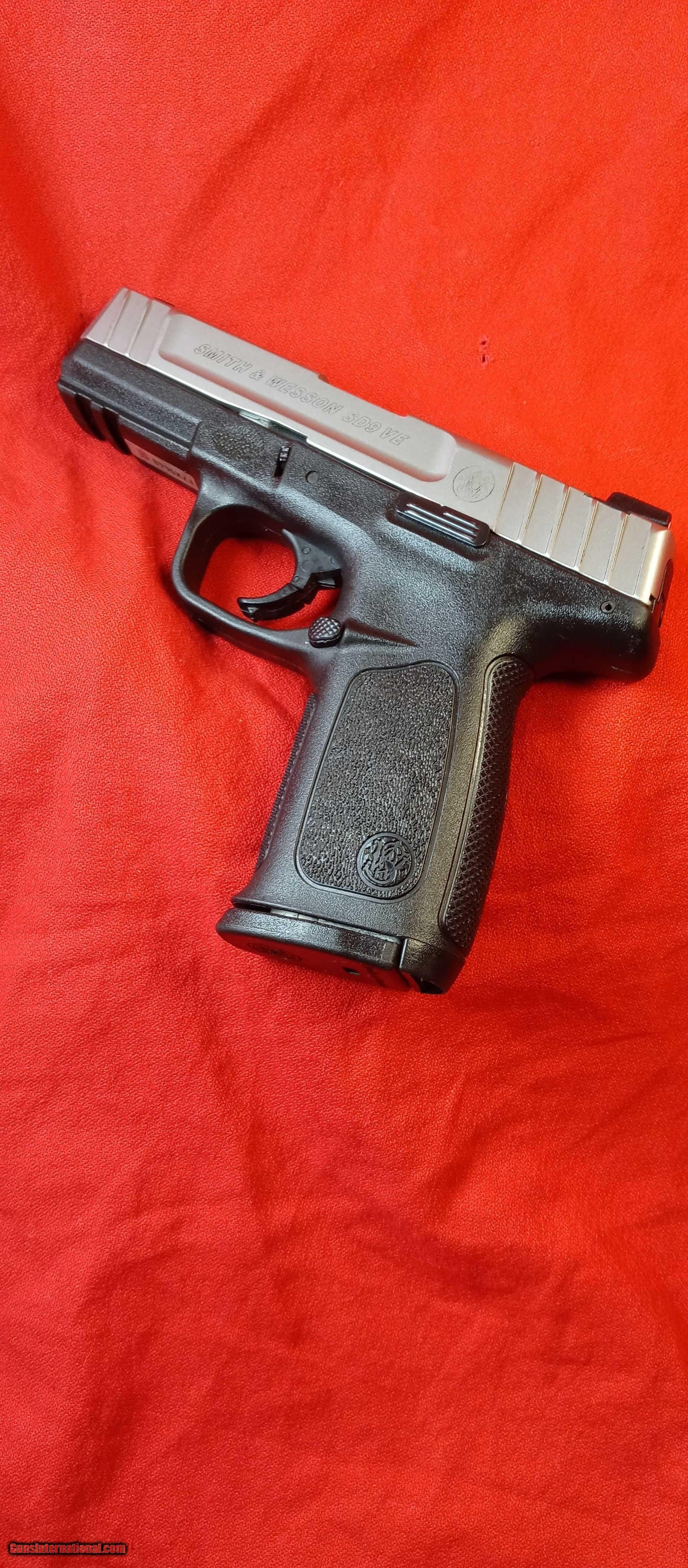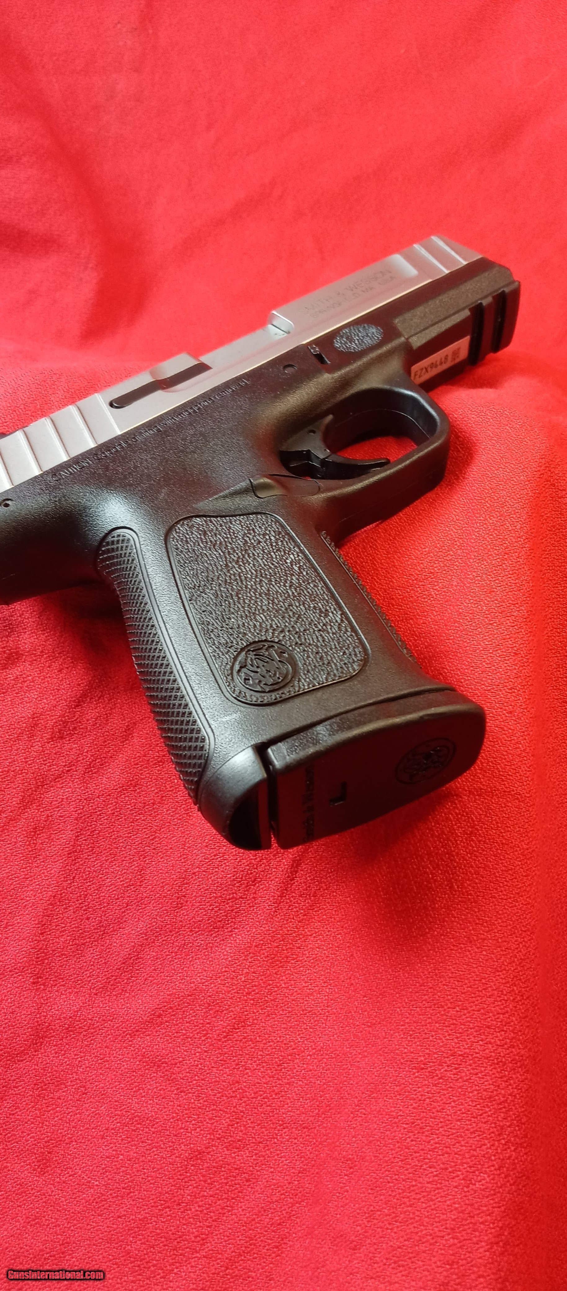 Description: Guns Listing ID: 360057 SMITH & WESSON SDVE 9 MM 13-1 ROUNDS, 4 INCH BARREL LENGTH, SDT™ - Self Defense Trigger for Optimal, Consistent Pull First Round to Last Dovetailed, White Dot Sights, Standard, Picatinny-Style Rail, Ergonomic, Textured Grip, Textured Finger Locator, Aggressive Front and Back Strap Texturing, Distinctive Two-Tone Finish, Front and Rear Serrations SOLD Manufacturer: SMITH & WESSON Model: SD9VE Caliber Info: 9 MM Condition: Used - Non-Certified Barrels: 4 BARREL Finish: TWO TONE BLACK AND STAINLESS |
