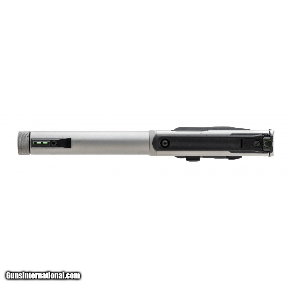 Description: " SN: UEN0488. Stainless rimfire pistol with 5.5 threaded barrel. Has adjustable rear sight, front fiber optic sight, manual thumb safety and 10rd magazine. Overall excellent condition. Comes with box and extra magazine. SOLD |