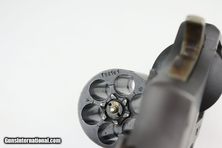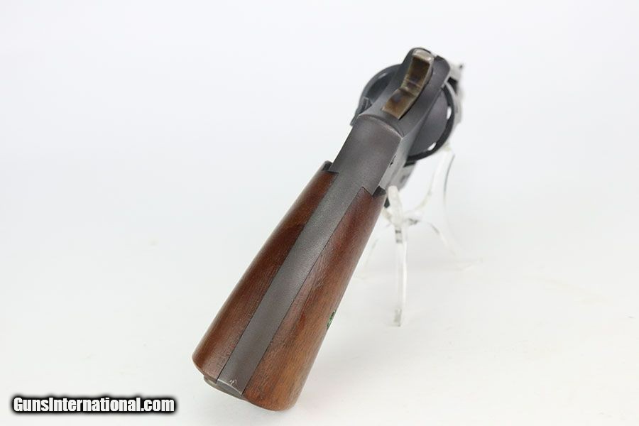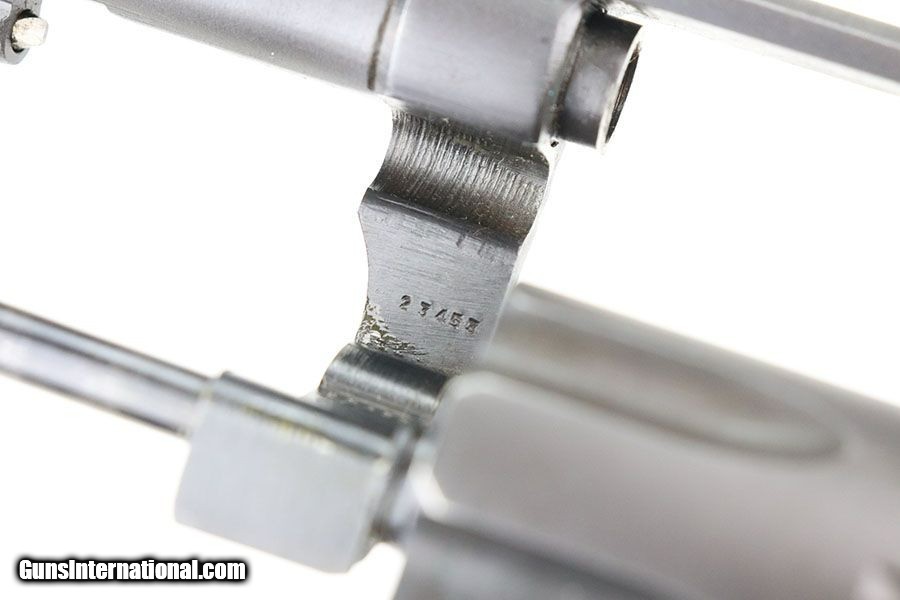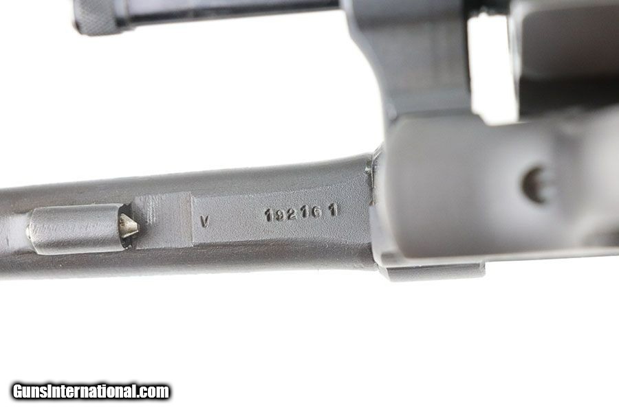 Description: This is a beautiful Smith & Wesson Victory model from World War II. The original finish is 97-98%, with only a slight roll mark on the cylinder and minor finish loss around the muzzle. All parts are matching and correct. It is marked with a flaming bomb on the bottom of the grip frame. Nice case hardening on trigger and hammer. Nice tight action. Mirror bore. Minty grips. Comes with an unmarked holster. SOLD Curio/Relic: Yes Handgun Caliber: .38 Special Manufacturer: Smith & Wesson Model: Victory Serial Number: V192161 Condition: 97-98% Bore Condition: 9.5/10 Manufacture Date: 1942-44 |
