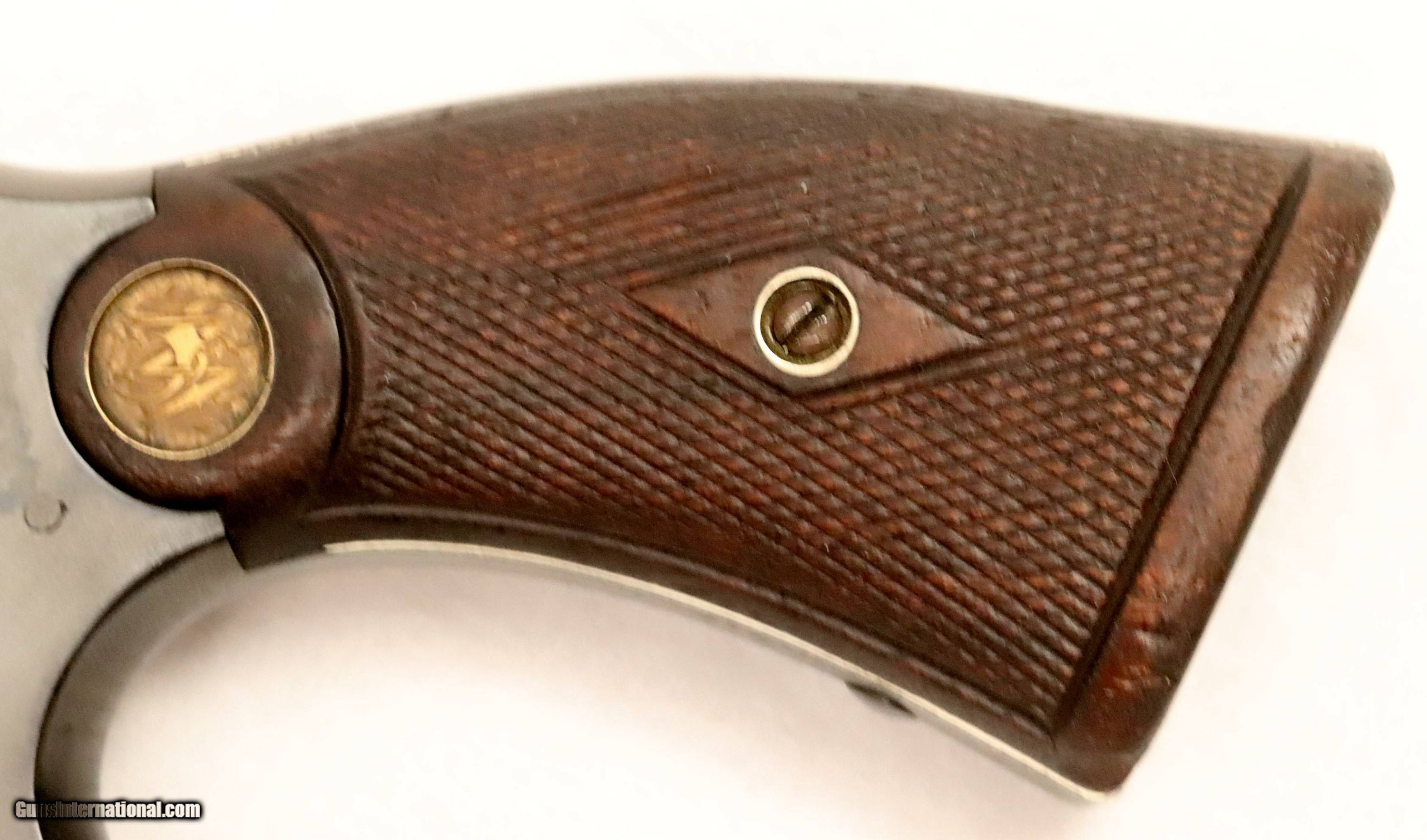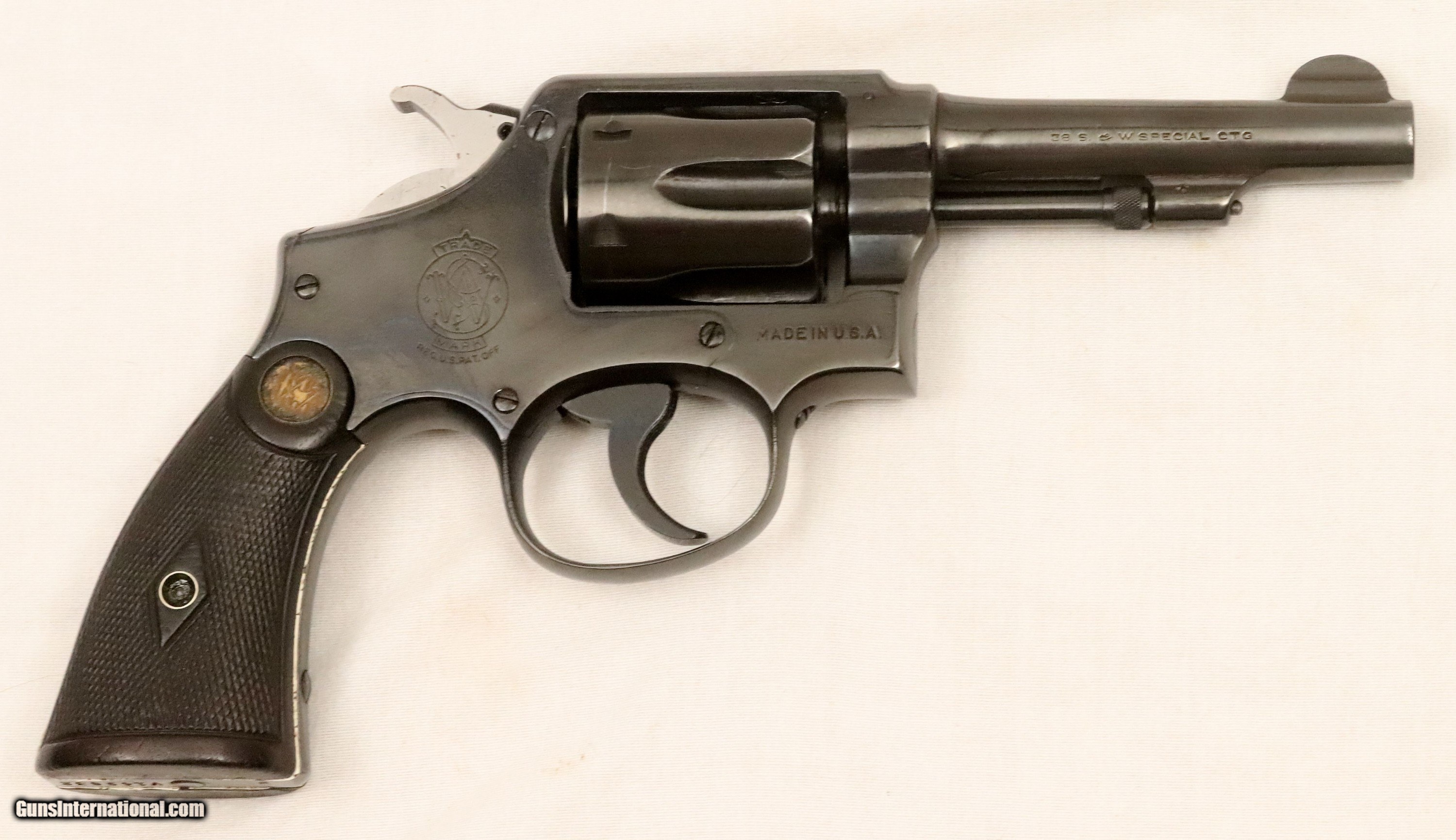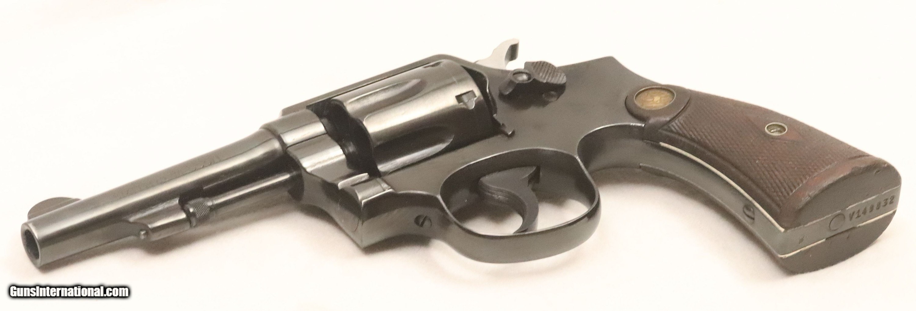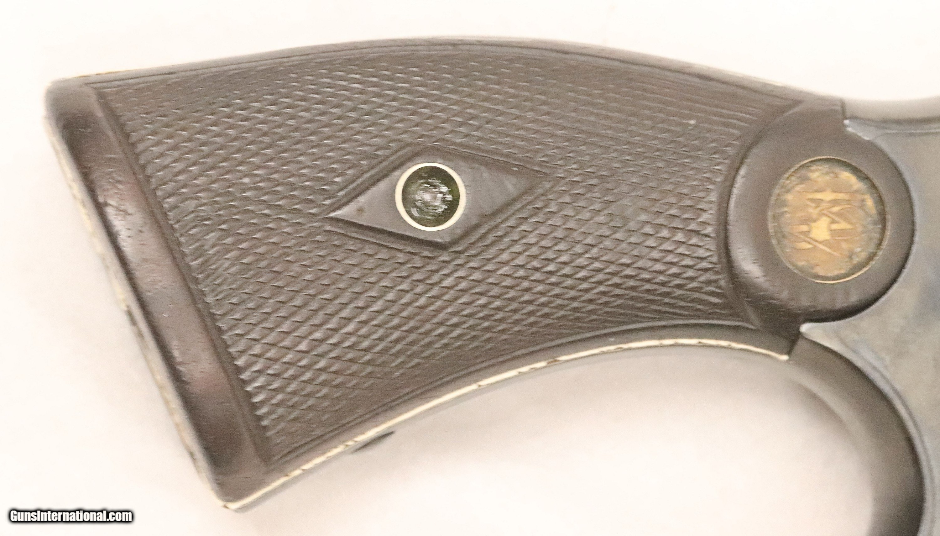 Description: This Smith & Wesson Victory model was made in 1944 with a parkerized finish and Smooth Walnut grips. At wars end it was likely in inventory and not needed by the Military. My guess is that it was sold to a civilian distributor who had it polished & blued, The grips were changed to fancy civilian style and the lanyard loop removed. A fancy gun brings more money than an old Army gun. The frame, barrel and cylinder all have matching serial numbers. In addition to the serial number, there is an “8” stamped on the butt. Rack number, police number, who knows? The walnut grips are not numbered and have a cardboard spacer between frame and grip. Perhaps it’s just a white line spacer as was popular in the 1950’s. The bore and chambers are excellent and the action locks tight and functions as new. Caliber .38 Special with a 4” barrel. Serial Number: V 149832. FFL or C&R REQUIRED. Beaver Creek Arms TERMS & CONDITIONS Objective: As a collector of 40 years and Licensed Firearms Dealer since 1989 I have a clear definition of a satisfactory transaction. I will be paid as we agreed, and you will be satisfied with your purchase. My goal is to establish a client list of satisfied repeat customers who will recommend me to other collectors. It’s just that simple. Exiled Saudi princes with secret funds needing change from an over paid purchase need not apply. Notice: ALL Federal, State, & Local firearms laws will be followed. I will take NO shortcuts in the process of a legal sale or transfer, so please don’t ask. SHIPPING: Shipments are made via U.S.P.S. Priority Mail, Insured, with Signature required. Packing, Shipping and Insurance cost for this handgun is $40.00. Checks to be made out, and mailed to: Steve Clark 380 Beaver Creek Rd. Dillsburg PA 17019 FIREARMS: Modern firearms, post 1898, can only be shipped to a Type 01 Federal Firearms License address. C&R firearms, over 50 years old, can be shipped to a Type 03 Federal Firearms License address. A signed valid license copy will be required for shipment to only the license address. GUARANTEE: Your complete satisfaction is assured, see objective above. If you are not satisfied, please contact me within 3 days of receipt. Please don’t fire the weapon, safety, function and accuracy are NOT Guaranteed. Any weapon offered by Beaver Creek Arms is never test fired nor is there any representation that the gun is functional and safe to fire. These guns are sold for collectors and only represented as used firearms that must be checked by a competent person, observe all the necessary safety precautions prior to attempting to load and fire one of these weapons RETURNS: Returns must be made within 3 days of receipt. They must be received in exactly the same condition with no parts exchanged. If it has been altered, damaged, or fired, a refund will not be made. Packing, shipping and insurance cost will not be refunded. All layaway purchases are returnable for merchandise credit only. PAYMENT: Bank check, Personal check, and Money Orders are preferred. Visa and MasterCard are accepted with a 4% processing fee. LAYAWAYS: A 20% deposit is required. Balance is due in 30 days. Deposits are non-refundable and are forfeited after 40 days. Layaway sales are returnable for merchandise credit only. SALES TAX: Pennsylvania state sales tax is 6% for in-state purchases. The payment of other states sales tax, if applicable, for shipped items is the buyers responsibility. DISCREET: Client information will remain Confidential. Your privacy is protected. SOLD Curio/Relic: Yes |