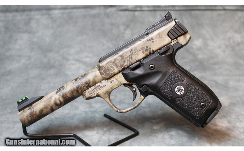 Description: The SW22 VICTORY® is constructed on a single-action, enclosed hammer-fired, blowback semi-automatic design. Chambered in .22 LR, the SW22 Victory comes highly featured with innovative design qualities that include a match-grade, interchangeable barrel for superb accuracy on the range or in the field along with a simple one-screw takedown design. .22 Long Rifle SOLD Chambers: .22 Long Rifle Metal Condition: Great Bore Condition: Great Barrels: 5.5 Weight: 2.2 lbs Sights: Fiber Optic Item Location: Independence, MO |