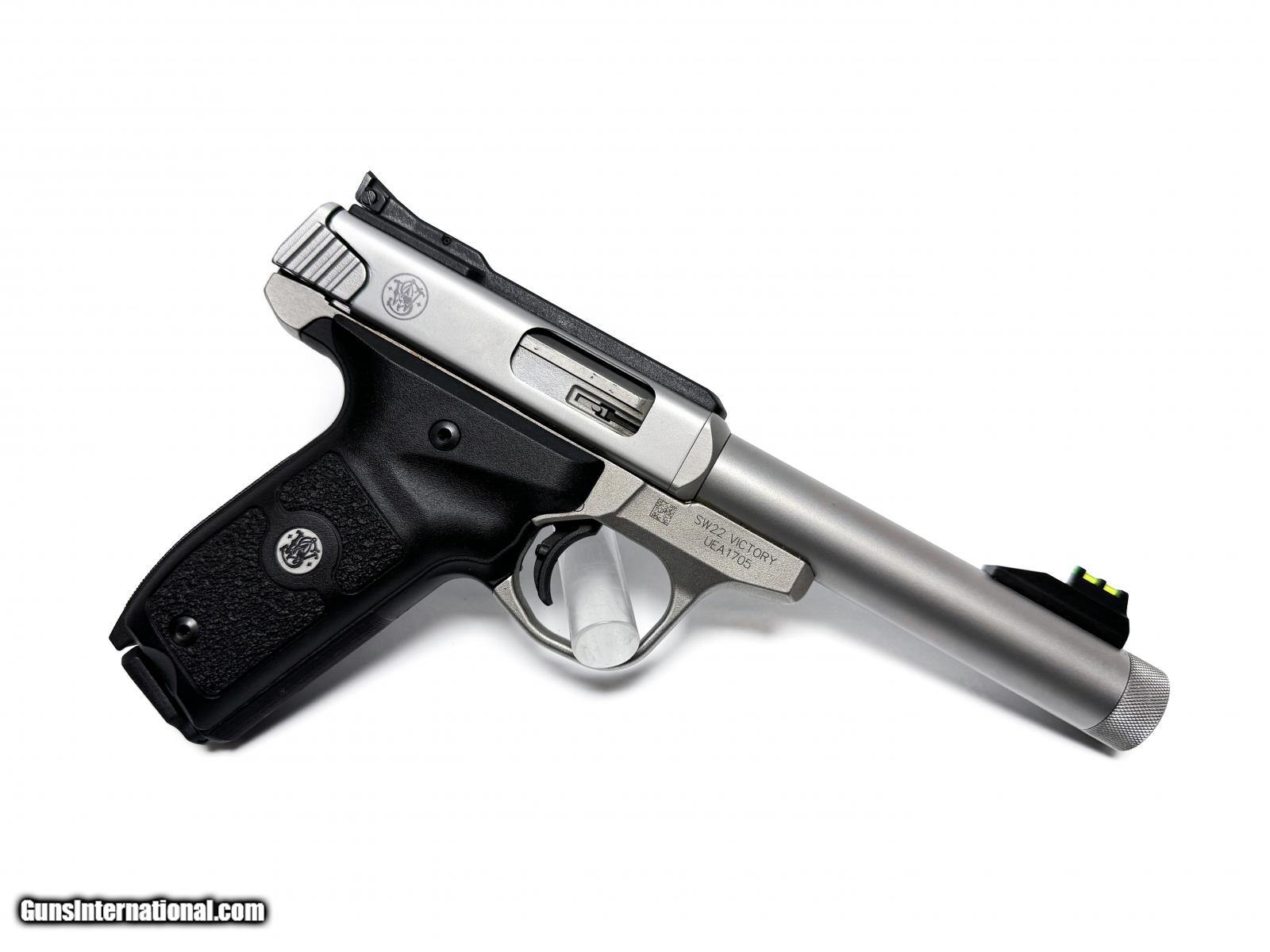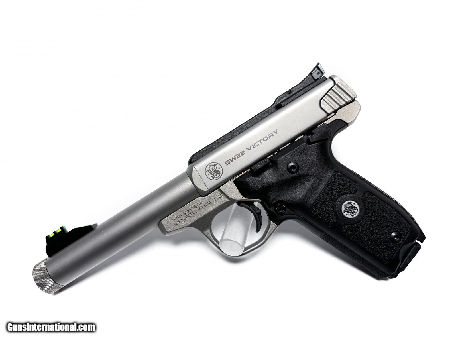 Description: Guns Listing ID: 1267324 Smith & Wesson SW22 Victory 22LR, 4.5\" Threaded Barrel, 3 10rd Mags, Fiber Optic Sights, Stainless Finish, No Box SOLD Manufacturer: SMITH & WESSON Model: SW22 VICTORY Caliber Info: .22 LR Condition: Used - Non-Certified Barrels: 4.5 BARREL |