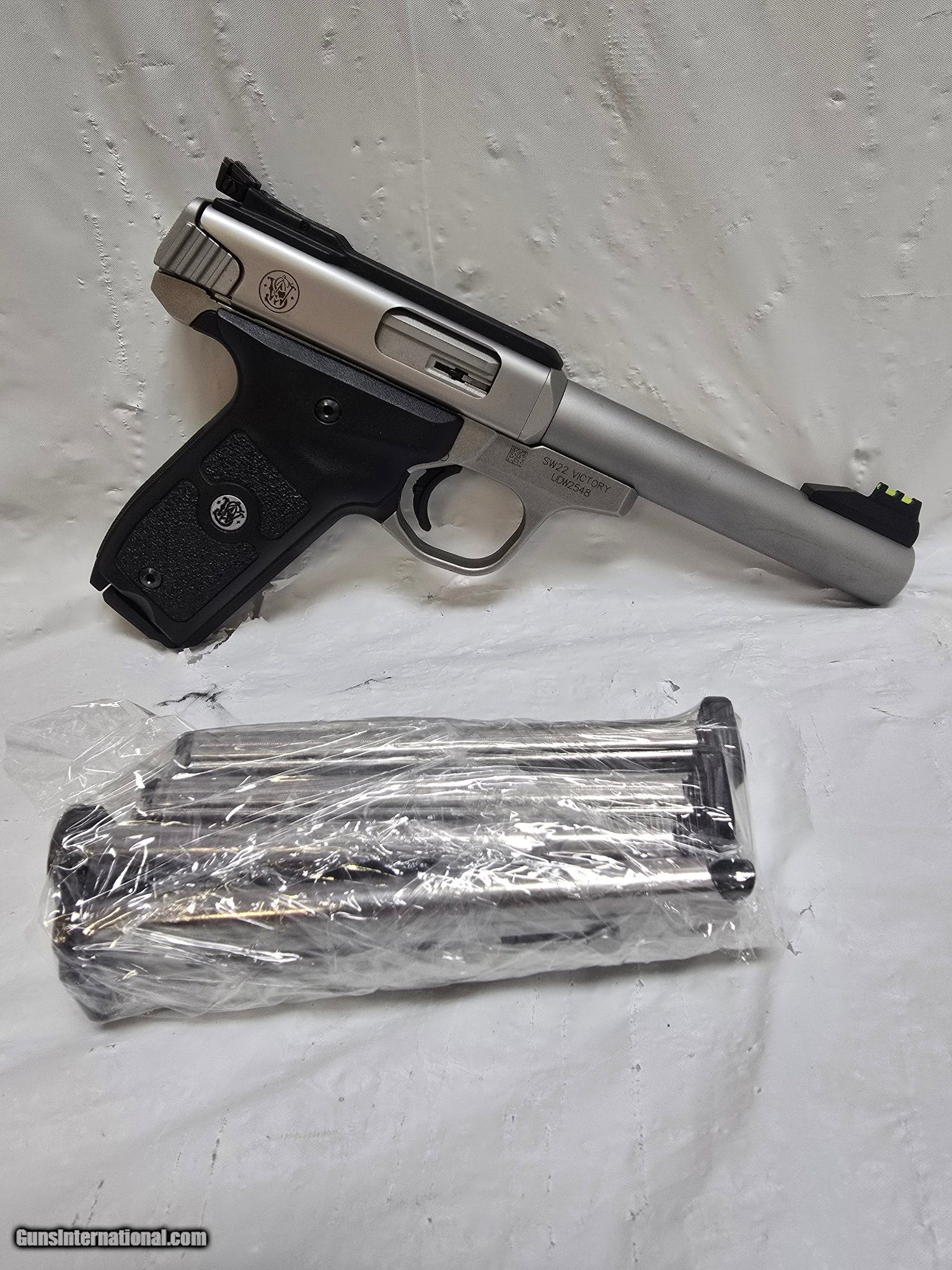 Description: Guns Listing ID: 465811 SMITH & WESSON SW22 VICTORY PISTOL. COMES WITH 4 EXTRA MAGAZINES. NO OTHER ACCESSORIES. # 15457 SOLD Manufacturer: SMITH & WESSON Model: SW22 VICTORY Condition: Used - Non-Certified Barrels: 5 Gauge Info: .22 LR Finish: black/silver |