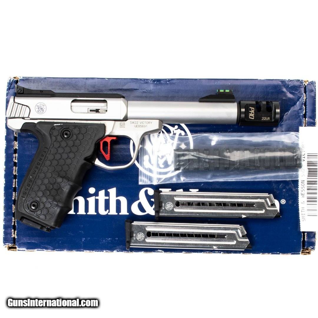 Description: Guns Listing ID: 546689 This Smith & Wesson SW22 Victory features an optic rail, Tandemkross trigger, Tandemkross grip, and a Tandemkross compensator. The original box and three 10-round magazines are included. Get the best bang for your buck when you get a Certified Used Firearm . When you see the Certified Used stamp on any of our firearms, you can be confident that you‚re getting exactly what you want – a gun only in very good to excellent condition and held to the highest quality standard. All Certified Used Guns come with a ‚no questions asked‚ return policy . PLUS, ALL CERTIFIED USED GUNS SHIP FREE! SOLD Manufacturer: SMITH & WESSON Model: SW22 VICTORY Caliber Info: .22 LR Condition: Used - Certified Barrels: 6.00 BARREL Action: SEMI AUTOMATIC Finish: stainless Weight: 2.4 |