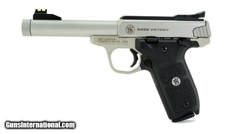 Description: Smith & Wesson SW22 Victory .22LR caliber pistol. Features a threaded Bull barrel and green fiber optic sights. Comes with extra magazine. NEW