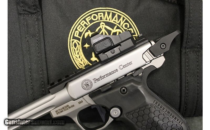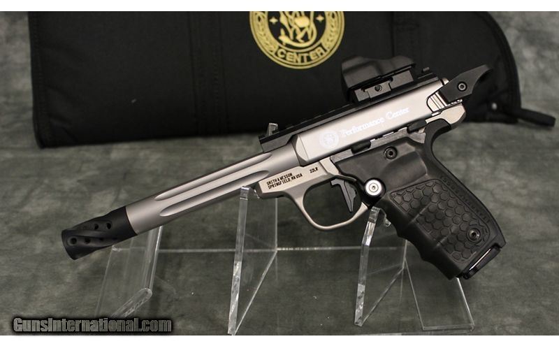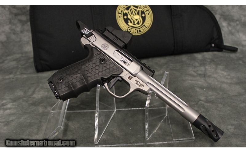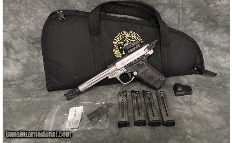 Description: Smith & Wesson Performance Center SW22 Victory Target Model Fluted Barrel Red Dot Sight 22 Long Rifle 6in Stainless Pistol - 10+1 Rounds - The Performance Center SW22 Victory Target pistols are chambered in .22LR and are designed specifically for target shooting competitions. These pistols feature 6-inch target barrels, muzzle brakes, and Tandemkross hive Grips. .22 Long Rifle SOLD Metal Condition: Excellent Bore Condition: Bright & Shiny Barrels: 6"Rifled Barrel with a Muzzle Break Sights: Vortex Viper Red Dot Sight Item Location: Auburn Hills, MI |