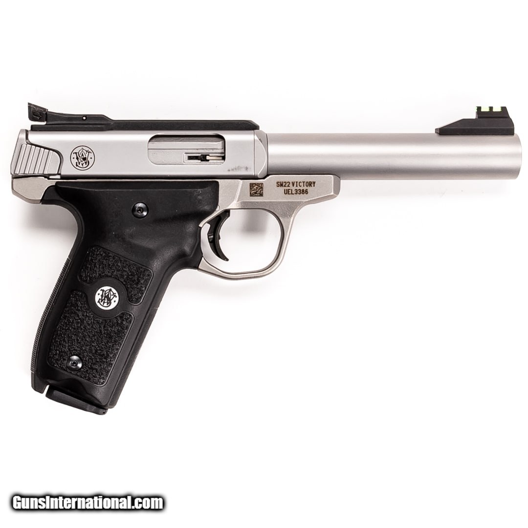 Description: Guns Listing ID: 258160 The Smith & Wesson SW22 Victory is a semi-automatic handgun chambered in .22lr. This will make a perfect handgun for plinking and hunting small game. Ships with 2 X 10 round magazines, the original box, and a manual. SOLD Manufacturer: SMITH & WESSON Model: SW22 VICTORY Caliber Info: .22 LR Condition: Used - Certified Barrels: 5.5 BARREL Finish: STAINLESS |