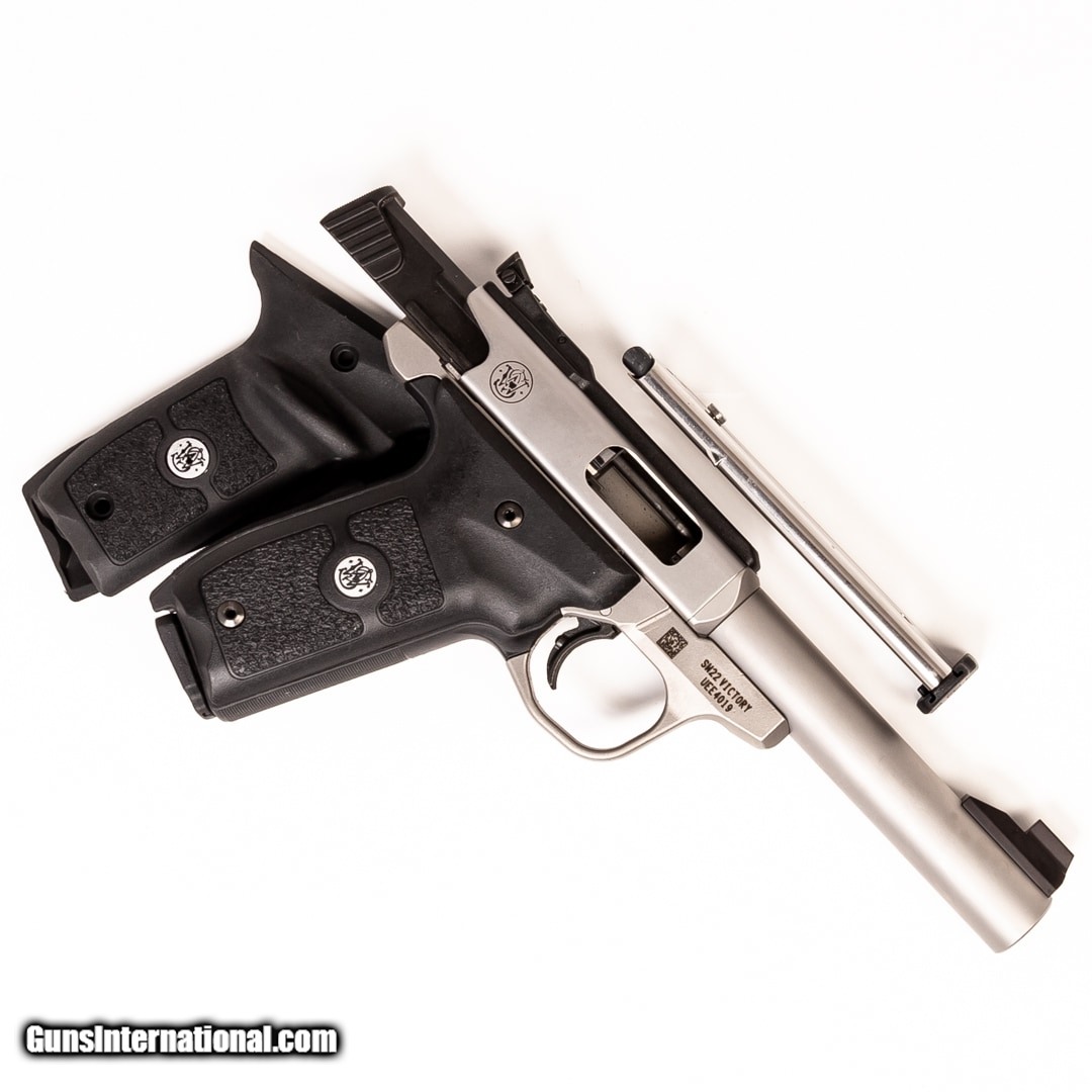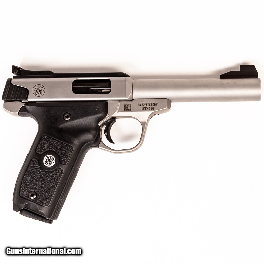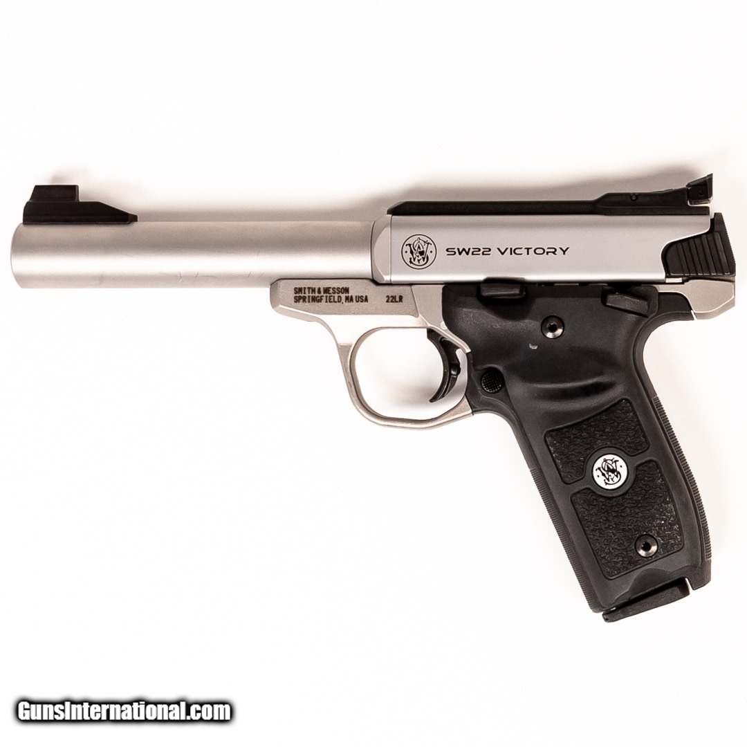 Description: Guns Listing ID: 445402 The Smith & Wesson SW22 Victory is a semi-automatic handgun chambered in .22lr. This will make a perfect handgun for plinking and hunting small game. Ships with 2 X 10 round magazines, the original case, 5\" rail mount, extra set of grips, and a manual. SOLD Manufacturer: SMITH & WESSON Model: SW22 VICTORY Caliber Info: .22 LR Condition: Used - Certified Barrels: 5.5 BARREL Finish: STAINLESS |