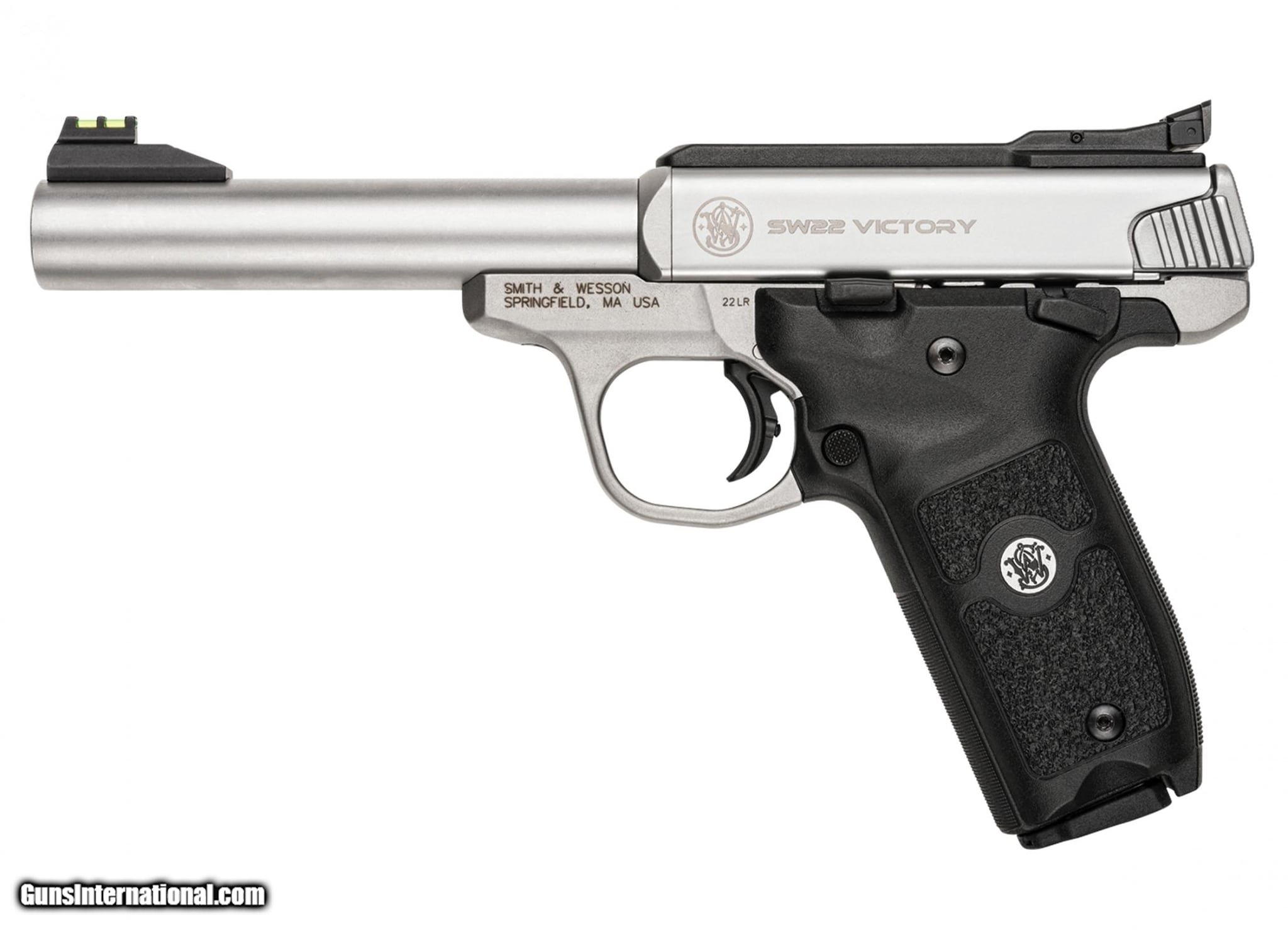Description: Guns Listing ID: 24401 The SW22 VICTORY® is constructed on a single-action, enclosed hammer-fired, blowback semi-automatic design. Chambered in .22 LR, the SW22 Victory comes highly featured with innovative design qualities that include a match-grade, interchangeable barrel for superb accuracy on the range or in the field along with a simple one-screw takedown design. The pistol’s high-end features, modern styling and enriched functionality place the SW22 Victory in a category of its own with an affordable price to match. SOLD Manufacturer: SMITH & WESSON Model: SW22 VICTORY Caliber Info: .22 LR Condition: new Barrels: 5.5 BARREL Finish: SILVER |