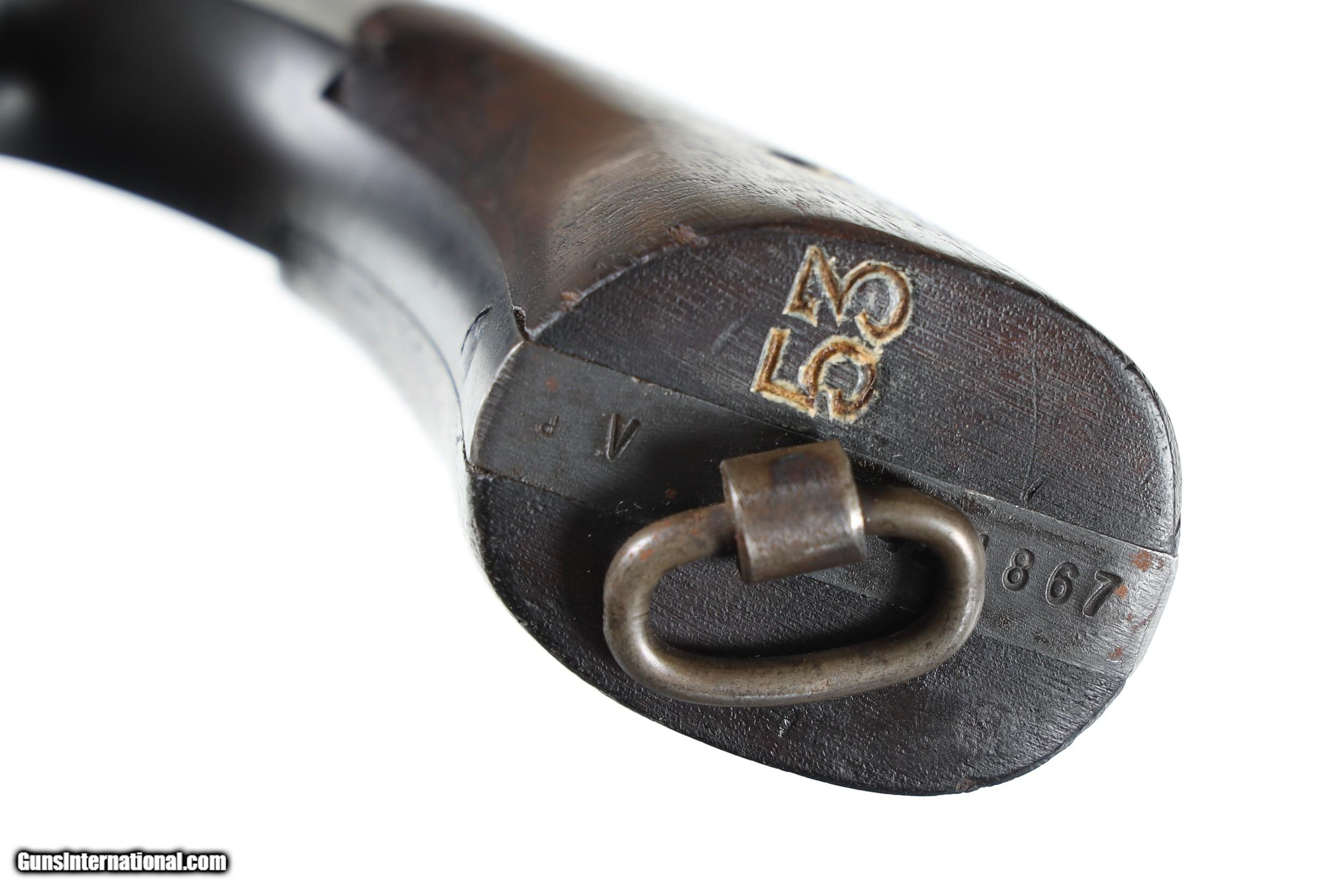 Description: About excellent overall condition exhibiting light handling marks throughout, crisp markings. Top of frame marked "Flaming Bomb/U S PROPERTY/GHD". "53" stamped into bottom of left grip. • Free Shipping, No Credit Card Fees. • Lay-a-way available for this firearm. • 1/3 Down, a 1/3 in 30 Days 1/3 in 60 Days. SOLD Curio/Relic: Yes Manufacturer: Smith & Wesson Model: Victory Serial Number: V414867 Barrel Length: 5 |