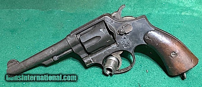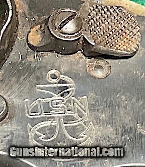 Description: From Extensive Military Collection= A 1943 SMTIH & WESSON VICTORY Revolver adorned with inscriptions; U.S. NAVY == U.S. GOVERNMENT ( worn smooth ) CV-3 USS SARATOGA and NAVY emblem on side plate = Original Smooth Walnut Grips numbered to the gun. (well used ) = Lanyard Ring == Bore at 85% with moderate rifling == Dark Militry finish is just that, spotting & dark . Action Strong & Postive == Timing and Lock up next to factroy pure === Unusal FIVE (5) Inch Barrel with fixed sights == Screw slots appear vertually virgin == Print has been scubbed with Vinegar & Tooth paste to bring out details for Photographic purposes == This gun has Charact\er and History == ALL OFFERS CONSIDERED === MOTIVATED to SELL = C & R will suffice === U.S. Only === 35.00 shipping == SOLD Curio/Relic: Yes Handgun Caliber: .38 Special Manufacturer: sMITH & WESSON Model: Victory Condition: 85% Metal Condition: above average Wood Condition: smooth , solid Bore Condition: 85% Action: double action |