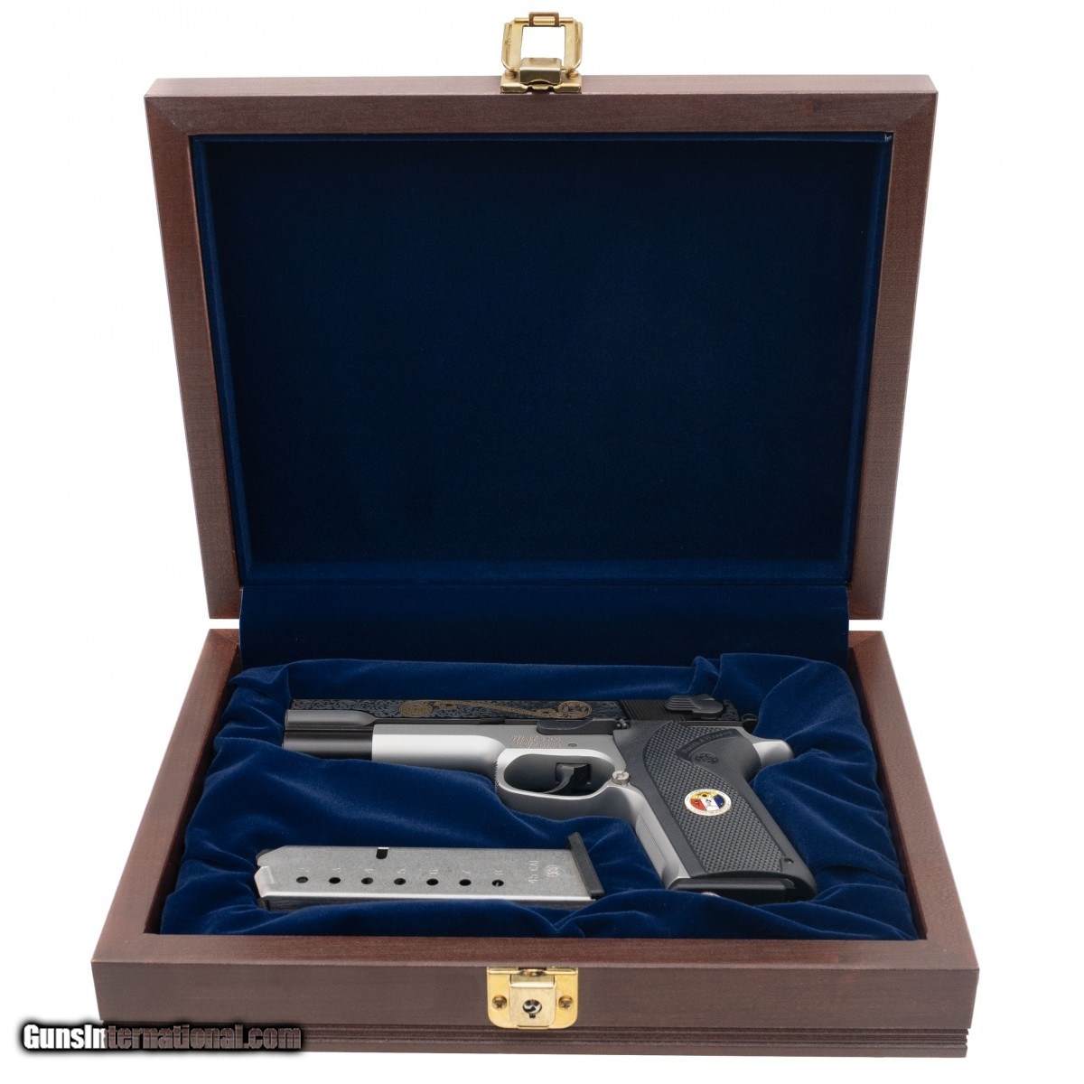SN: LAP0197. Manufactured in 1996, .45 ACP with a 4.9"" barrel. Pair of consecutive Los Angeles Police Revolver and Athletics Club 65th anniversary commemorative pistols with two-tone finish and engraved slide and LAPRAAC and LAPD emblems on the grips. Overall excellent condition. Comes with two boxes, four magazines with the LAPRAAC emblem and a two presentation cases.