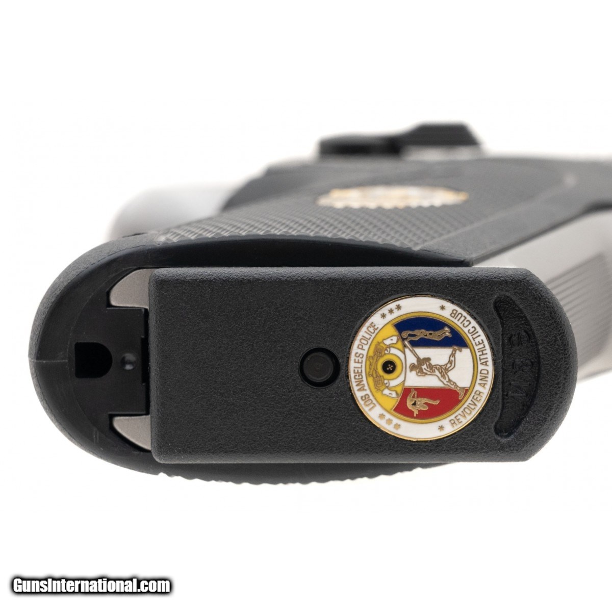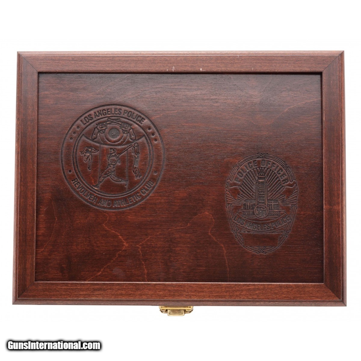Description: " SN: LAP0197. Manufactured in 1996, .45 ACP with a 4.9"" barrel. Pair of consecutive Los Angeles Police Revolver and Athletics Club 65th anniversary commemorative pistols with two-tone finish and engraved slide and LAPRAAC and LAPD emblems on the grips. Overall excellent condition. Comes with two boxes, four magazines with the LAPRAAC emblem and a two presentation cases. **Consignment SOLD |