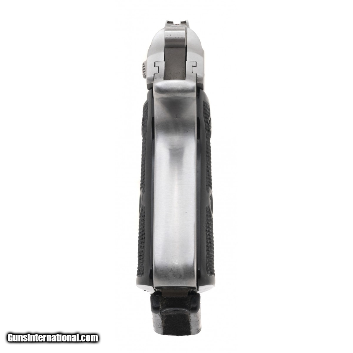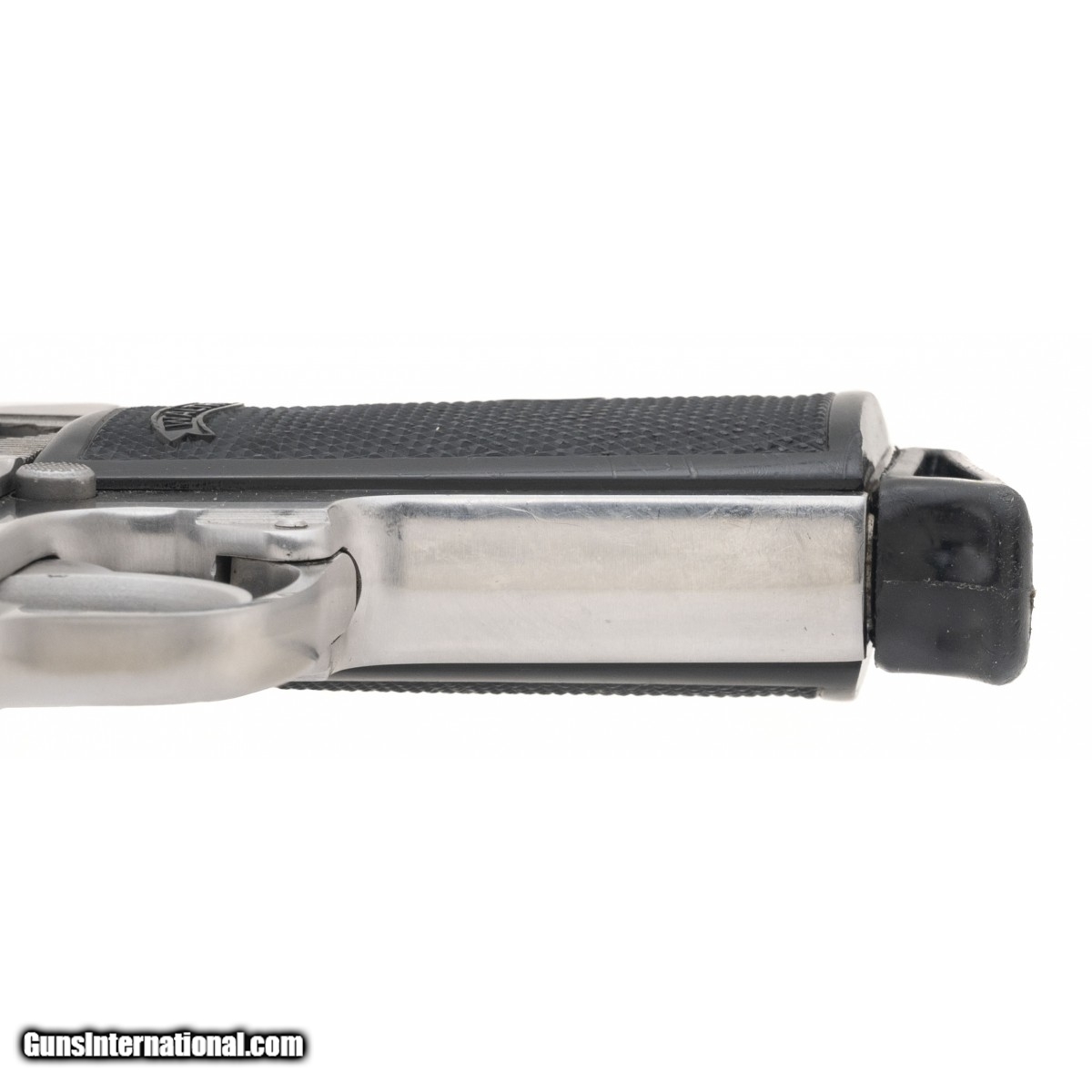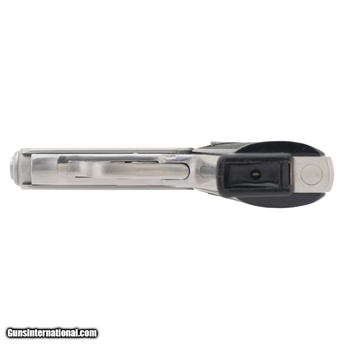 Description: " SN:2054BAC. Semi-automatic metal framed Bond pistol made in the USA by Smith & Wesson with a set of polymer checkered grips. In good condition. Comes in box with a spare flush magazine. SOLD |