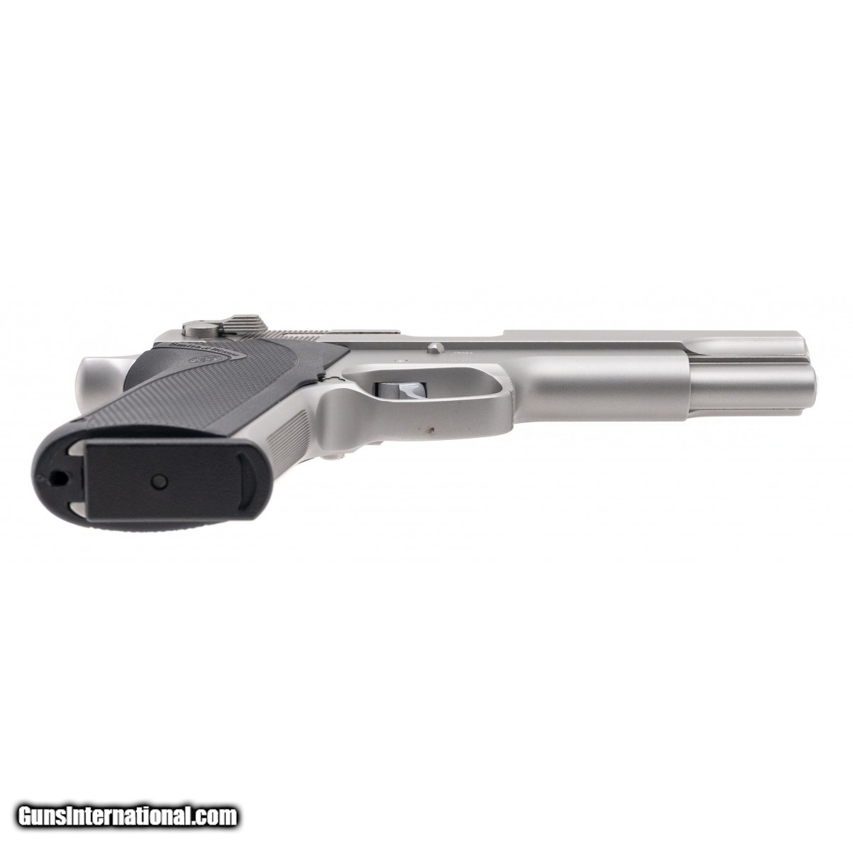 Description: " SN: TFJ3564. Made circa 1990's. 10mm with a 5"" barrel. Bore is excellent. Steel frame, hammer fired pistol. Metal is in very good condition with light handling wear noted. Grips have minimal handling wear noted. Overall very good condition. Comes with box and extra magazine. SOLD |