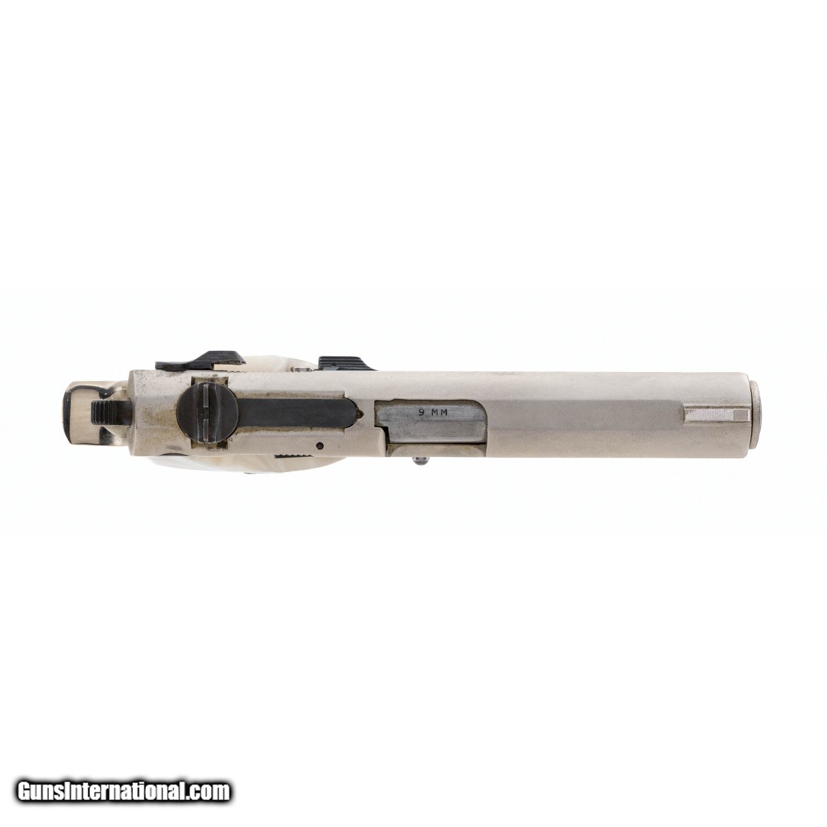 Description: " SN: A527382. 1st gen 9mm pistol with nickel finish and fancy grips. Very good condition with light wear. SOLD |