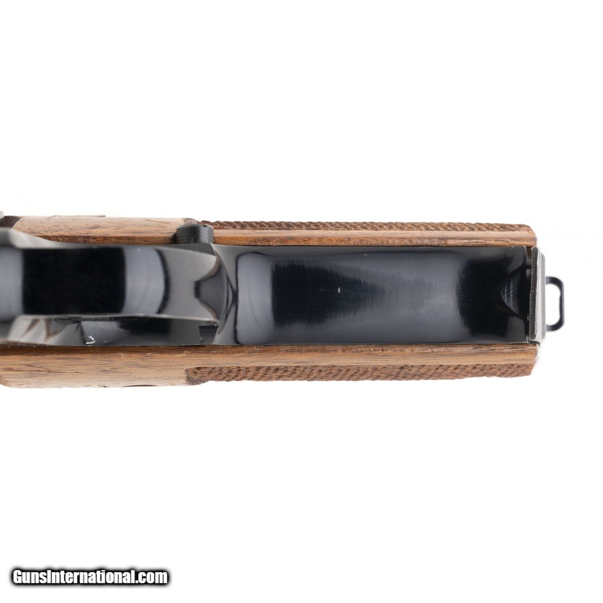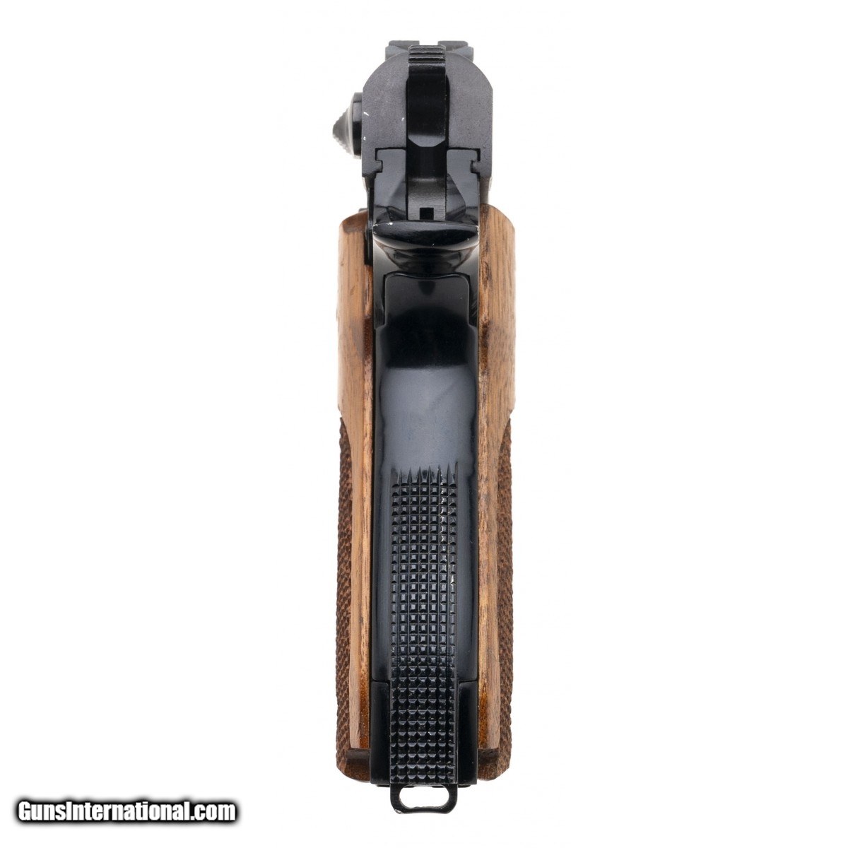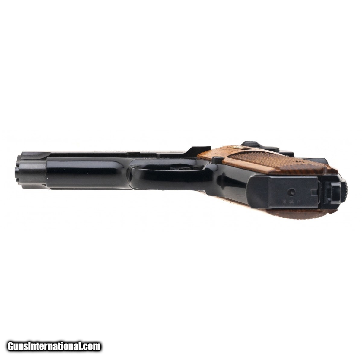 Description: " SN:A580523. Made in 1979 9mm with a 4"" barrel. Bore is excellent. Semi-auto pistol with 98% original finish, adjustable sight and original wood grips. Grips are in very good condition. Overall condition is very good. SOLD |