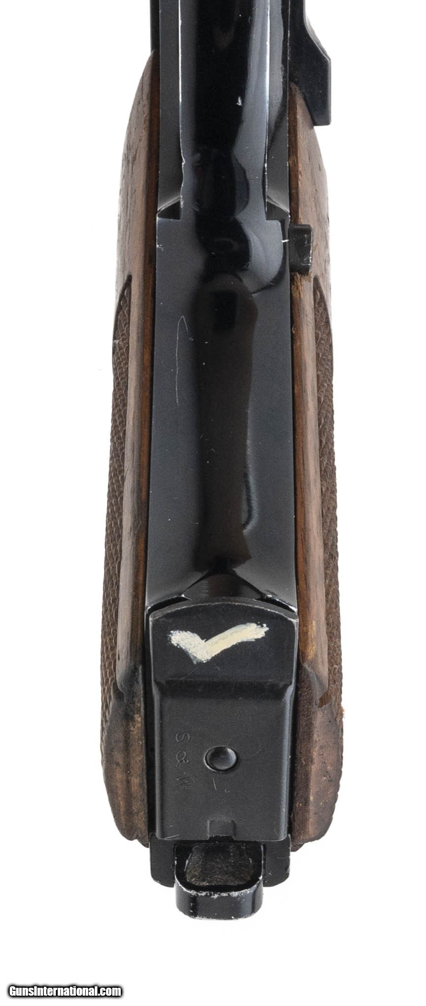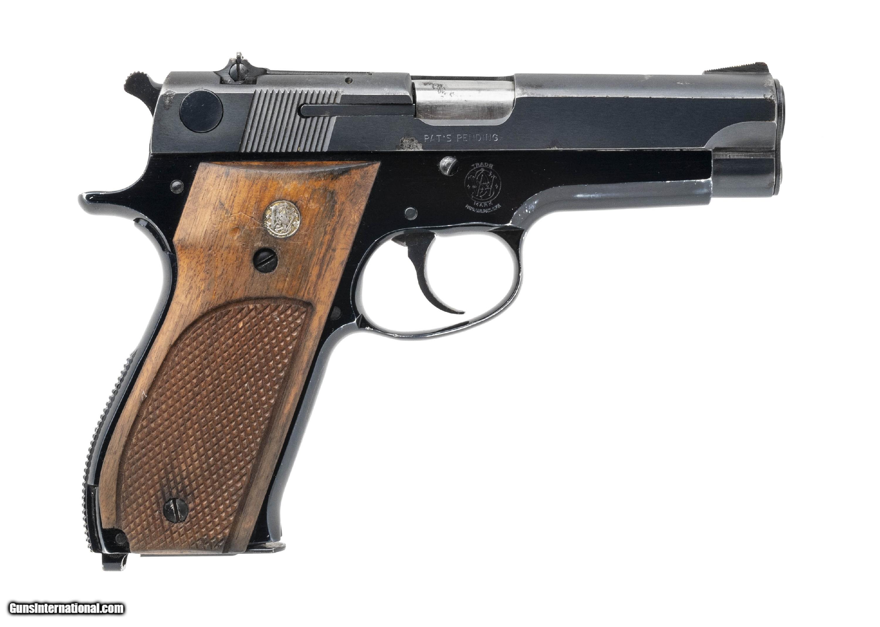 Description: "SN: A283816. Made circa 1970s. 9mm with a 4"" barrel. Bore is in near excellent condition. S&W double action alloy frame pistol. Finish is in very good condition with light wear on slide and frame. Checkered wood grips are in very good condition. Overall condition is very good. Comes with box. (Consignment) Price: $600.00 Contact Seller |