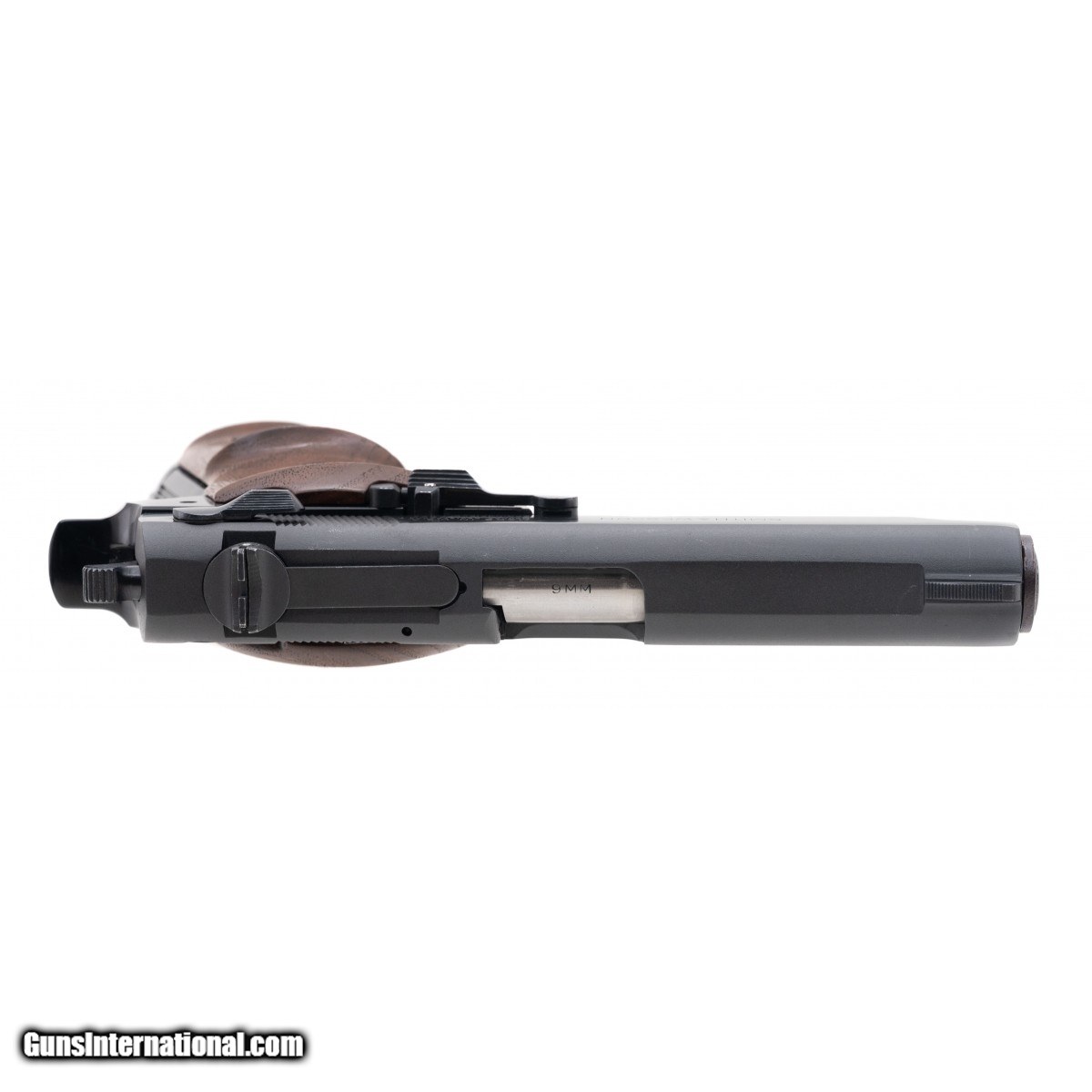 SN: A387165. Manufactured circa 1970's, 9mm with a 4"" barrel. Bore is excellent. Double action pistol with alloy frame, double stack magazine, slide mounted safety/decocker and wood grips. Overall excellent condition. Comes with Plano hard case and extra magazine. (Consignment)