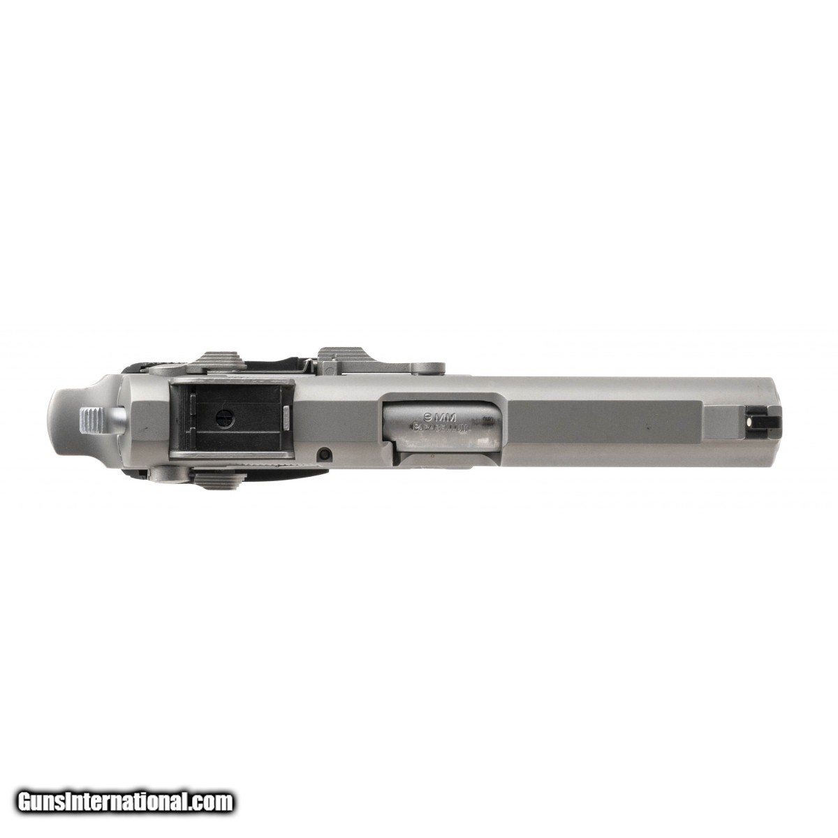 SN: VAA6735. 1990s vintage 9mm with a 4"" barrel. Bore is in excellent condition. All stainless steel pistol. Finish and grips are in excellent condition. Has adjustable rear sight. Overall condition is excellent.
