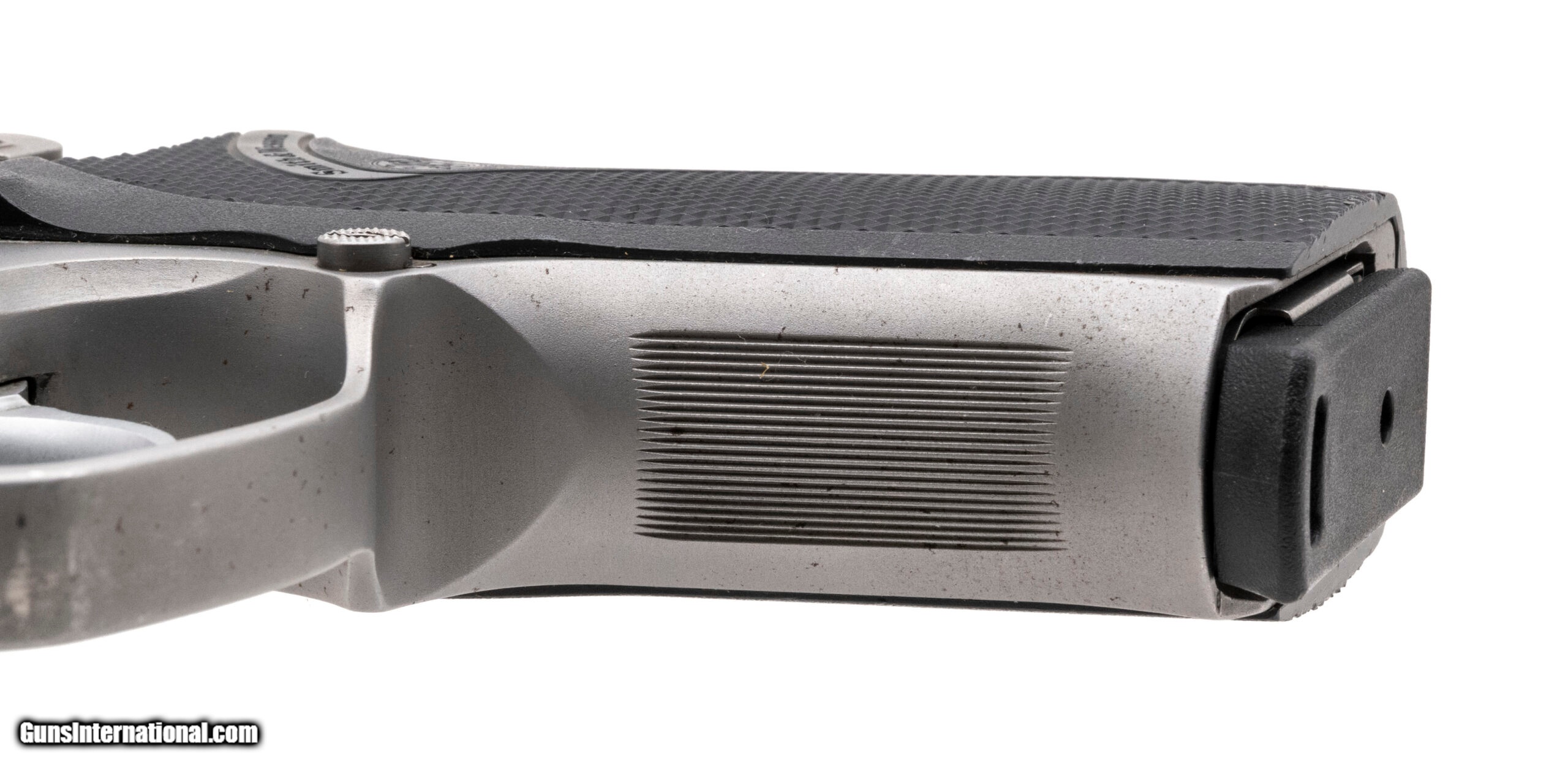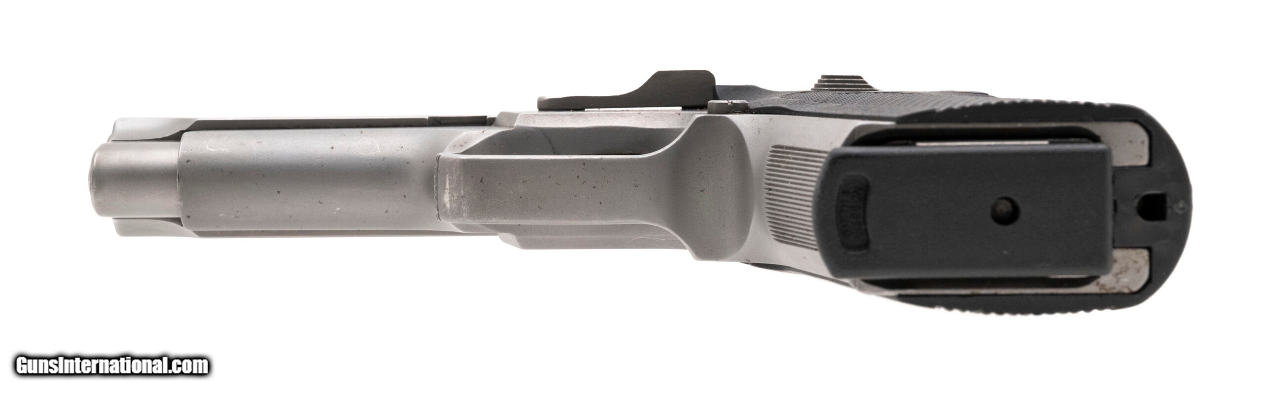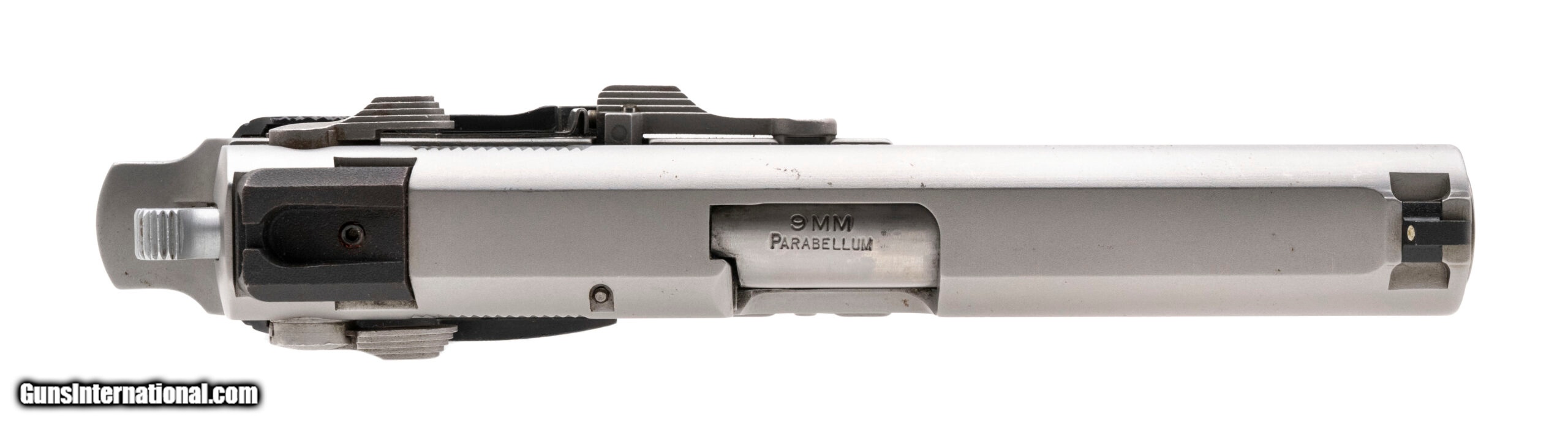 Description: "SN: TFN2150. Made circa 1990s vintage, 9mm with a 4"" barrel. Bore is bright with strong rifling. Stainless steel double action pistol with adjustable rear sight and checkered plastic grips. Overall condition is very good. SOLD |