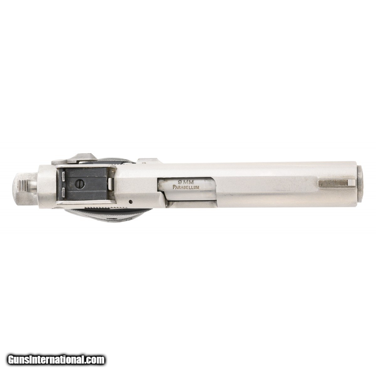 SN:TAE9992. Made circa 1980's. 9mm with a 4"" barrel. Bore is in excellent condition. Vintage 80's semi-auto stainless handgun. Finish and grips are very good condition with wear noted on grips. Overall condition is very good. Comes with case and 1 extra magazine.(CONSIGNMENT)