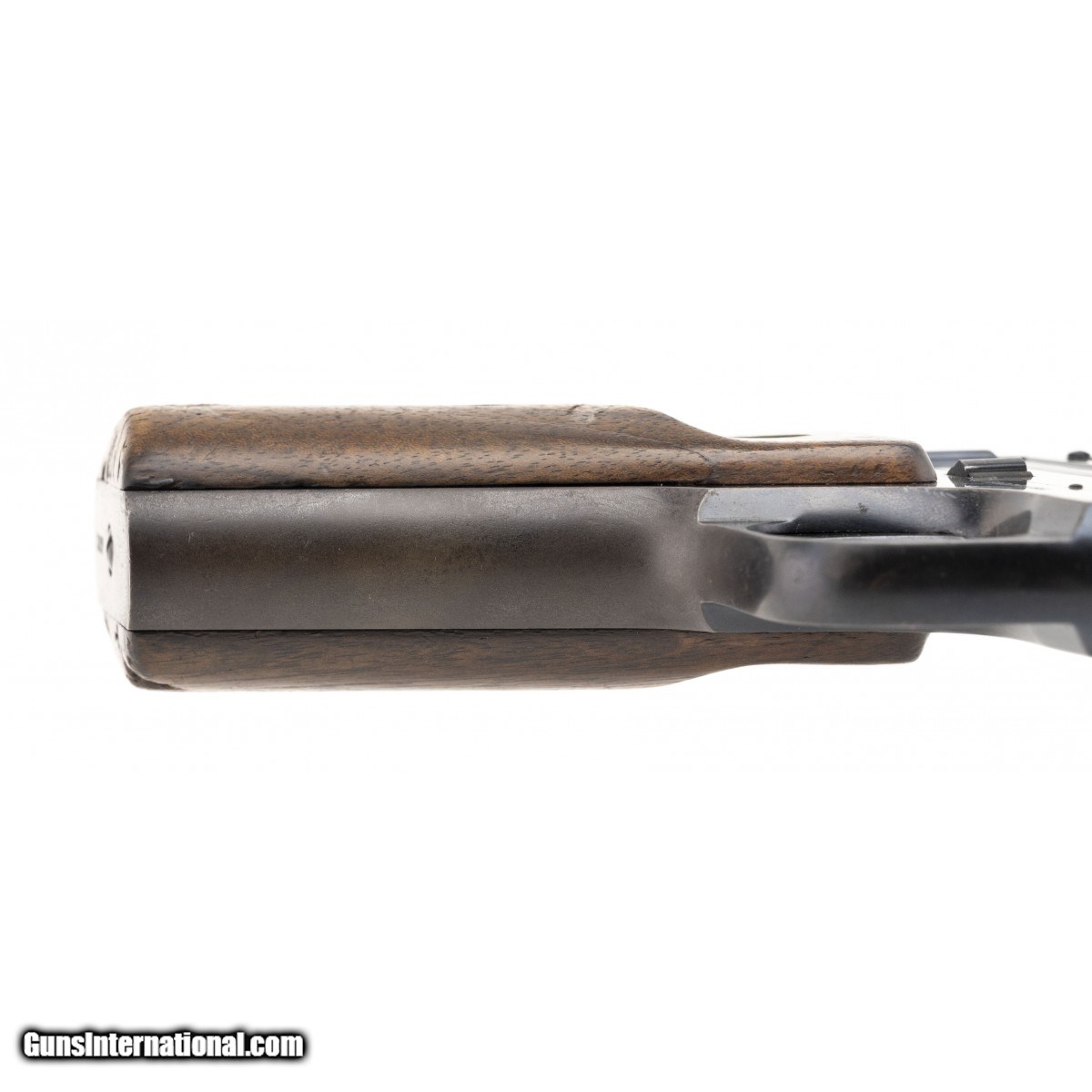 Description: " Single shot target pistol with a 10"" barrel. The bore is excellent. The pistol has approximately 90% of its original factory blue with most of the wear on the grip frame, and some wear near the muzzle. The grips are in good condition with some wear from use. Overall the condition is very good. SOLD |