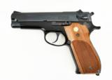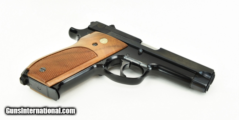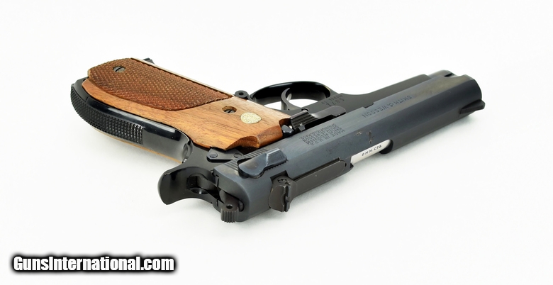 Description: Smith & Wesson 39 9mm Para caliber pistol. Very early model, serial No. 5871 in excellent condition with light wear.