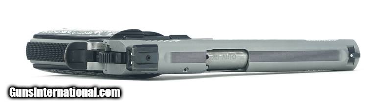 Description: Smith & Wesson SW1911 .45ACP caliber pistol. Engraved special edition with scroll engraving, fancy serrations, and beautiful custom grips. Excellent condition with box.