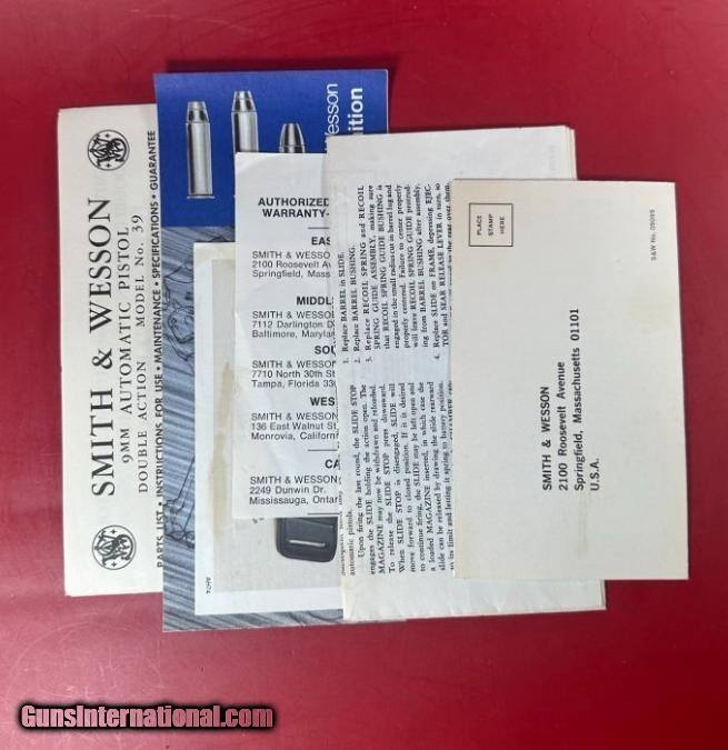 1977 Smith & Wesson Model 39-2. 3 mags Box Tools Papers. NEAR MINT