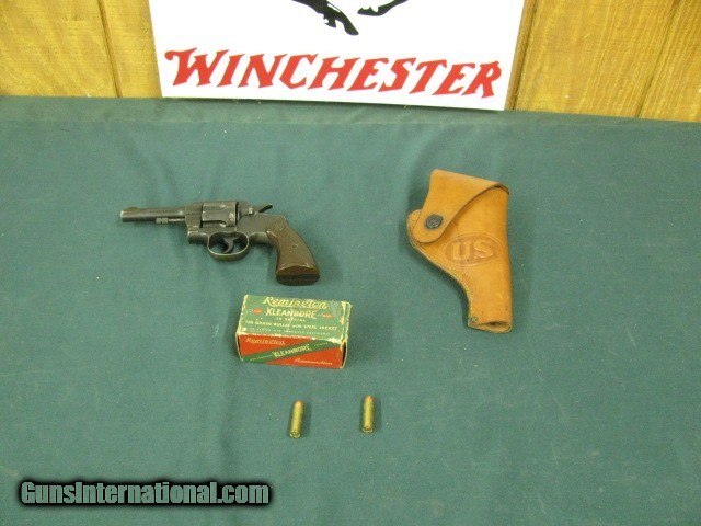 Description: 7054 Smith Wesson WW II Commando 38 special, 4 inch barrel,ordinance bomb and GHD Proof marks,90-95%parkerized finish,Colt Verified proof marks,perfect bore,small crack bottom of grip,RIA marked half flap holster in exc+condition&stamped MRT 1 54 execellent,one box Remington 38special ammo mfg during WWII military contract. SOLD Handgun Caliber: .38 Special |