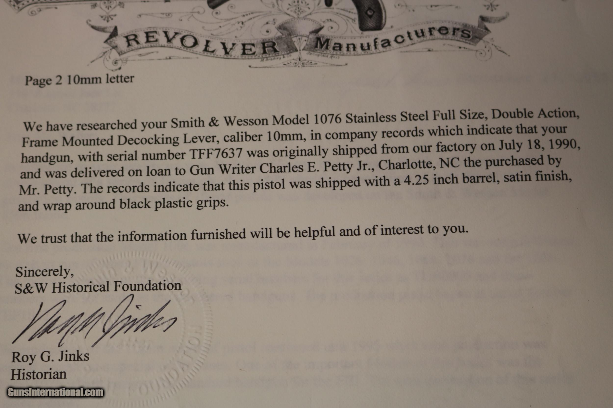 Collector Items Smith & Wesson 1076 10mm loaned to Charles Petty For American Rifleman Magazine