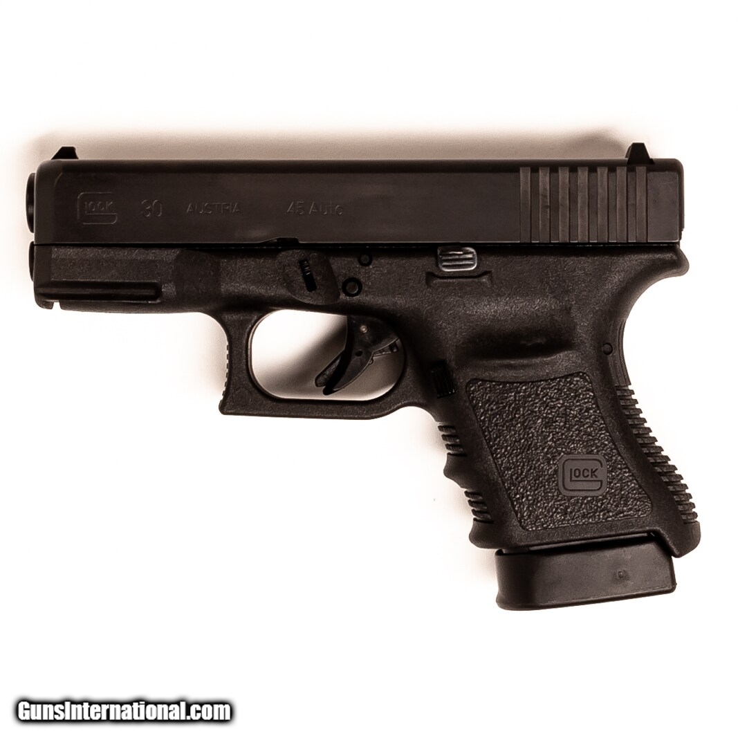 Description: Guns Listing ID: 650676 A semi-automatic handgun chambered in 45 ACP, this Glock G30SF boasts a shortened frame and slimmed down grip, making it ideal for concealed carry. The compact design, coupled with simple operation, offers smooth unholstering, handling, and reholstering, while the textured grip with finger grooves and checkered front and back straps ensure a comfortable and secure grasp. Other features include user-friendly sights and a Universal Glock Rail forward of the trigger guard. Tool-free takedown makes for easy maintenance. This G30SF includes an OEM case, manual, and two 10-round magazines. Get the best bang for your buck when you get a Certified Used Firearm . When you see the Certified Used stamp on any of our firearms, you can be confident that you’re getting exactly what you want – a gun only in very good to excellent condition and held to the highest quality standard. All Certified Used Guns come with a ‘no questions asked’ return policy . PLUS, ALL CERTIFIED USED GUNS SHIP FREE! SOLD Manufacturer: GLOCK Model: 30SF Caliber Info: .45 ACP Condition: Used - Certified Barrels: 3.8 barrel Finish: BLACK |