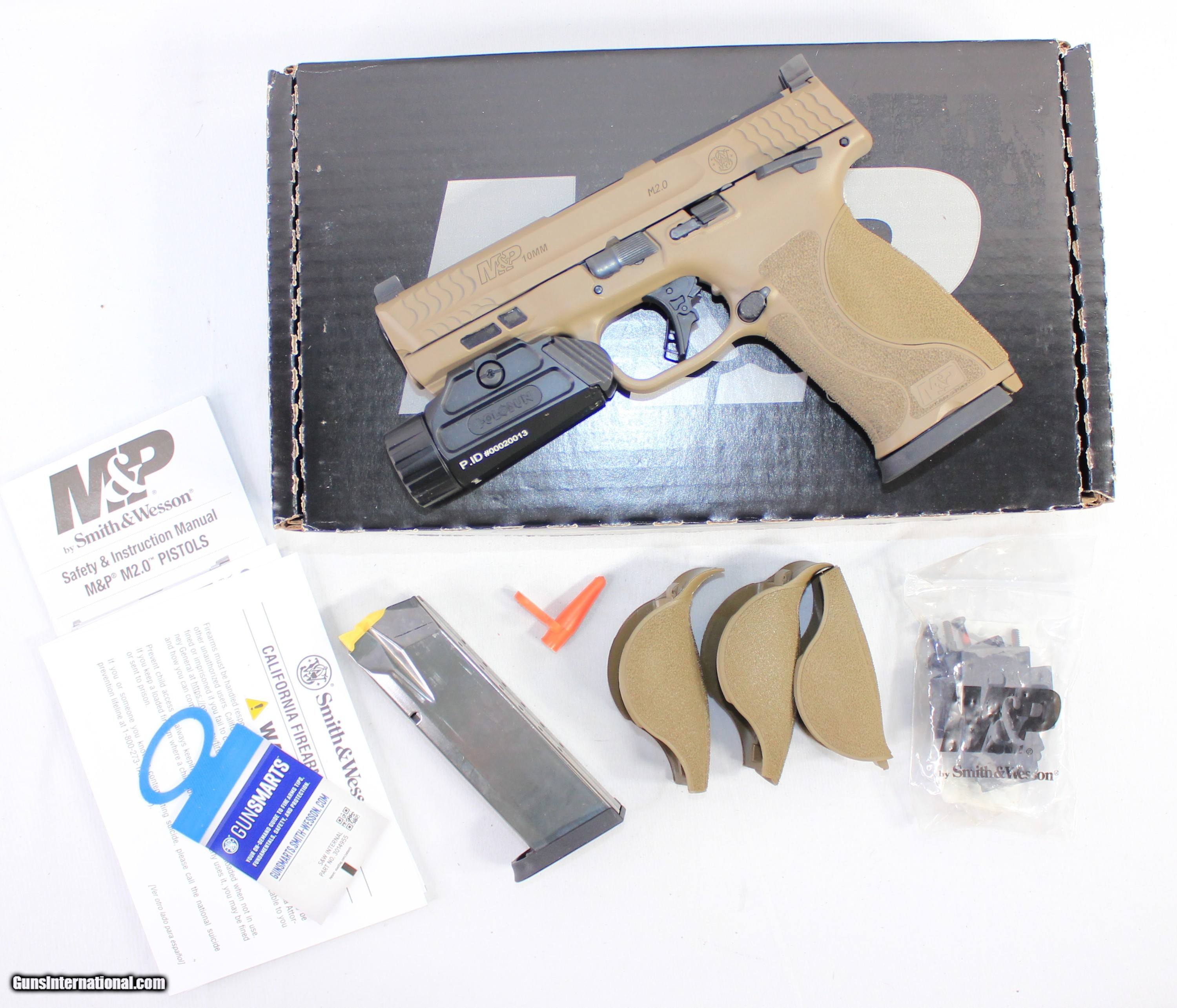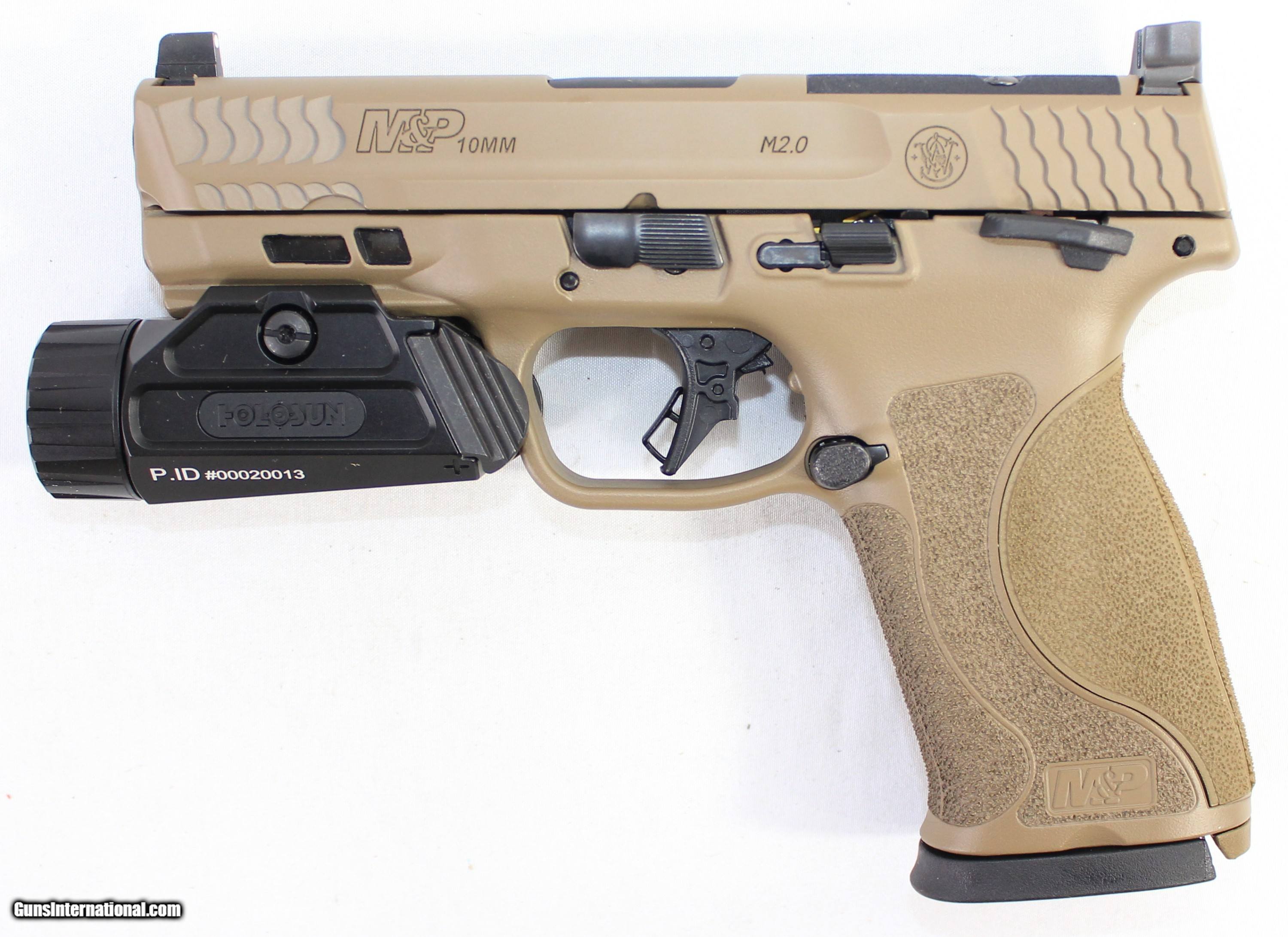 LIKE NEW SMITH & WESSON M&P M2.0 10MM AUTO 4" BARREL FDE W/ BOX 2-MAGS HOLOSUN P.ID LIGHT
