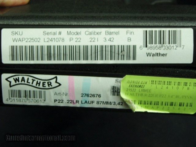 Description: NEW IN CASE WALTYHER PINK 22 WALTHER P-22..22 CALIBER 2 1/4 INCH BARREL. GREAT GIFT FOR THE HOLIDAY'S? NEVER FIRED.BOUGHT NEW AROUND YEAR 2000 IT WAS A GIFT TO A FRIEND AND SHE DECIDED TO LET IT GO..I HAVE NOT SEEN ANY OF THESE IN YEARS.. T.Y. SOLD Manufacturer: S&W Model: P-22 Serial Number: L241078 |